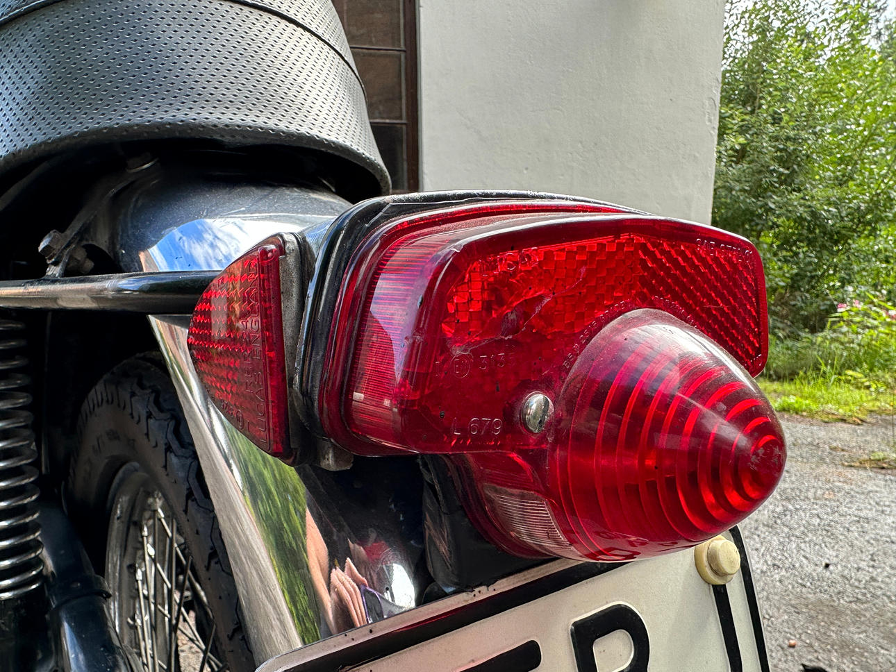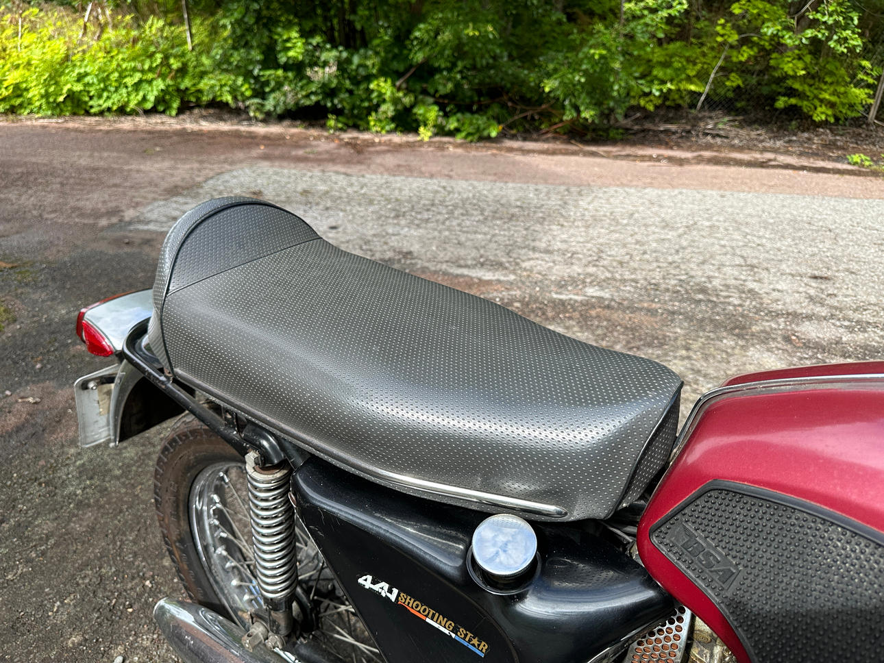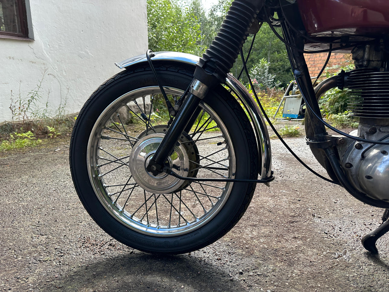 Mallivuosi: 1969 Rekisteröintinumero: FBJ 844 Runkonumero: 19284B44SS Moottori: 1-sylinterinen, OHV, 441cc Moottorinumero: HC19284B44SS Selkeä ruotsalainen titteli.