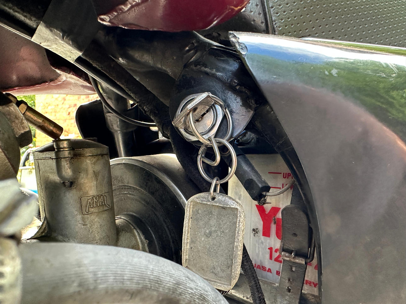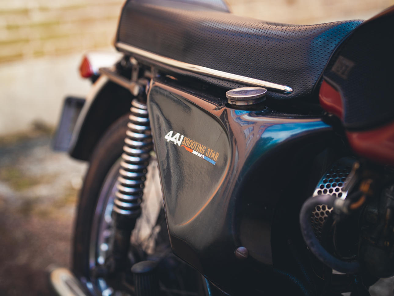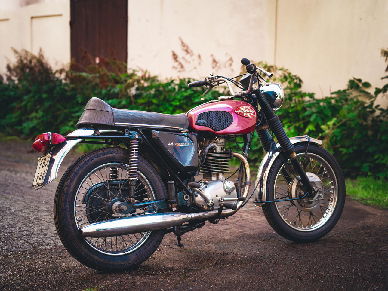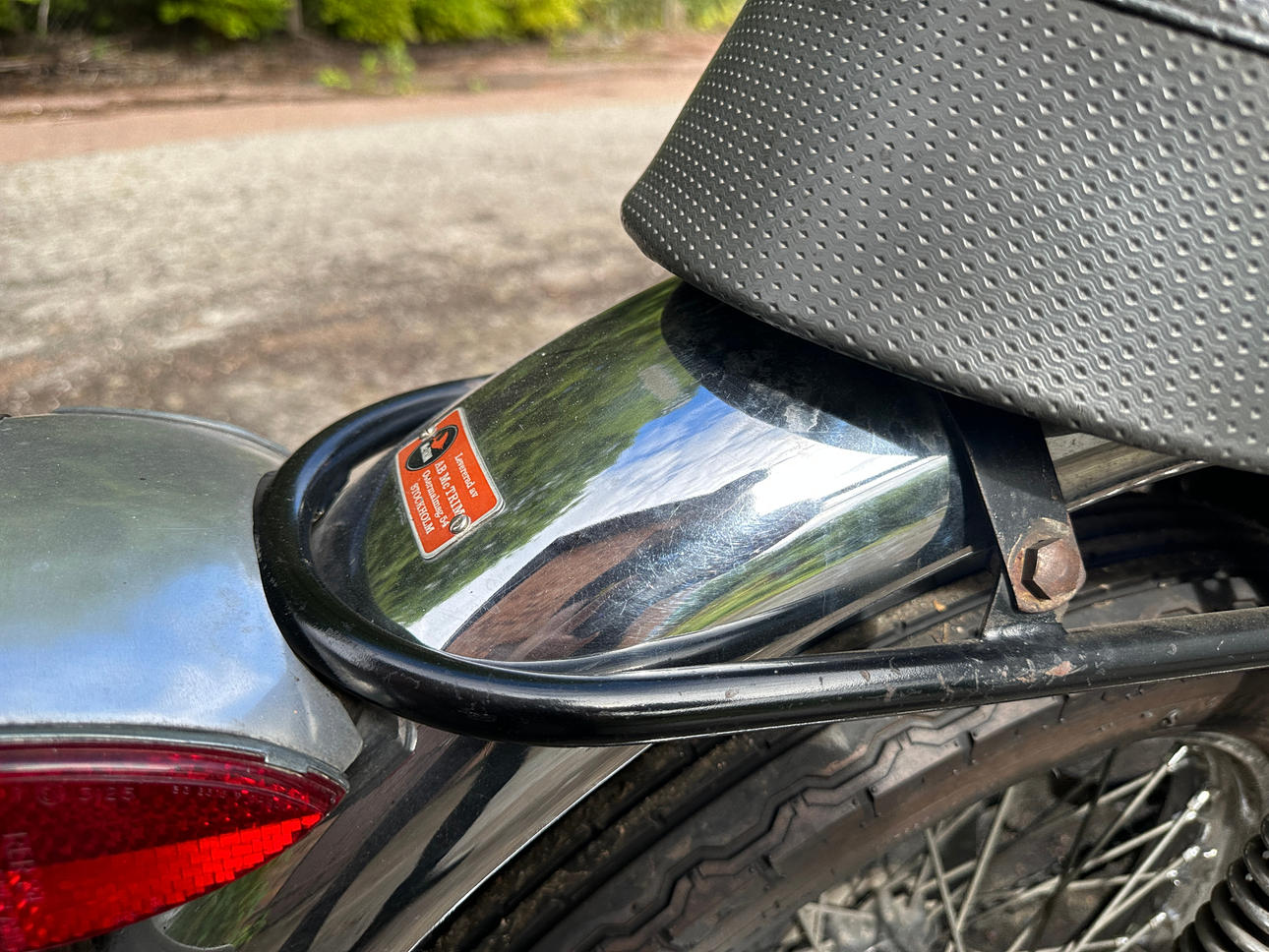 Mallivuosi: 1969 Rekisteröintinumero: FBJ 844 Runkonumero: 19284B44SS Moottori: 1-sylinterinen, OHV, 441cc Moottorinumero: HC19284B44SS Selkeä ruotsalainen titteli.