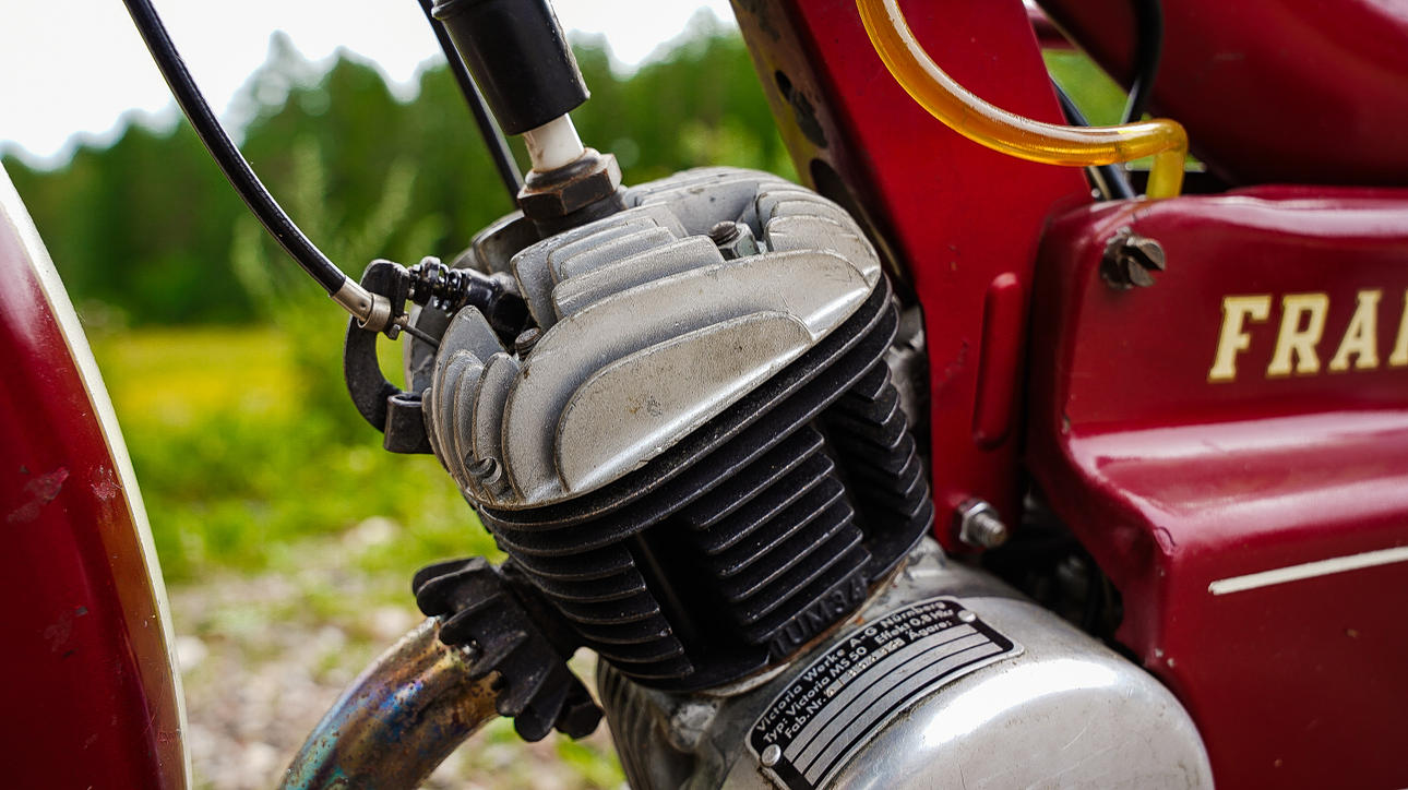Moottori Victoria MS 50 Moottori pyörii puristettuna.