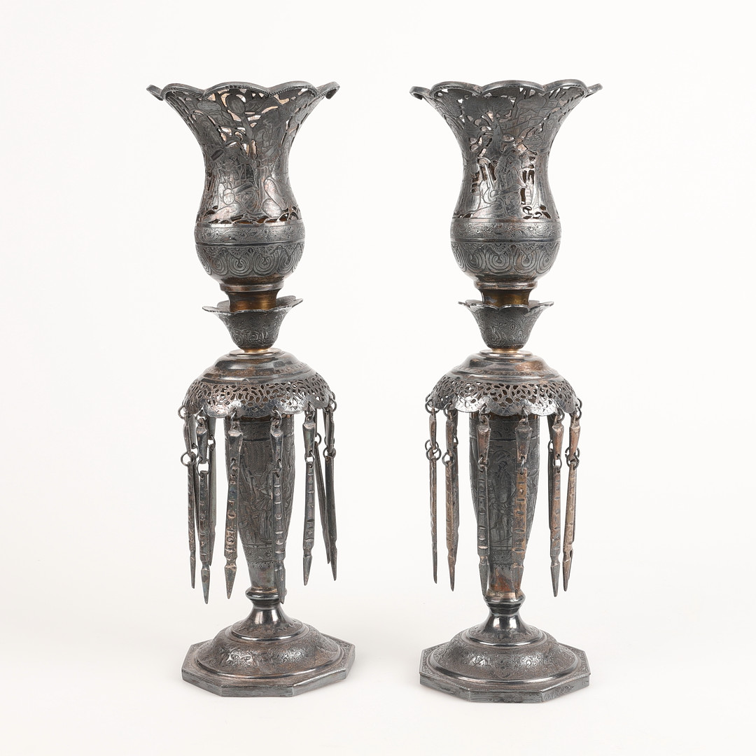 2997374. Kynttilänjalat, pari, hopea, persia.