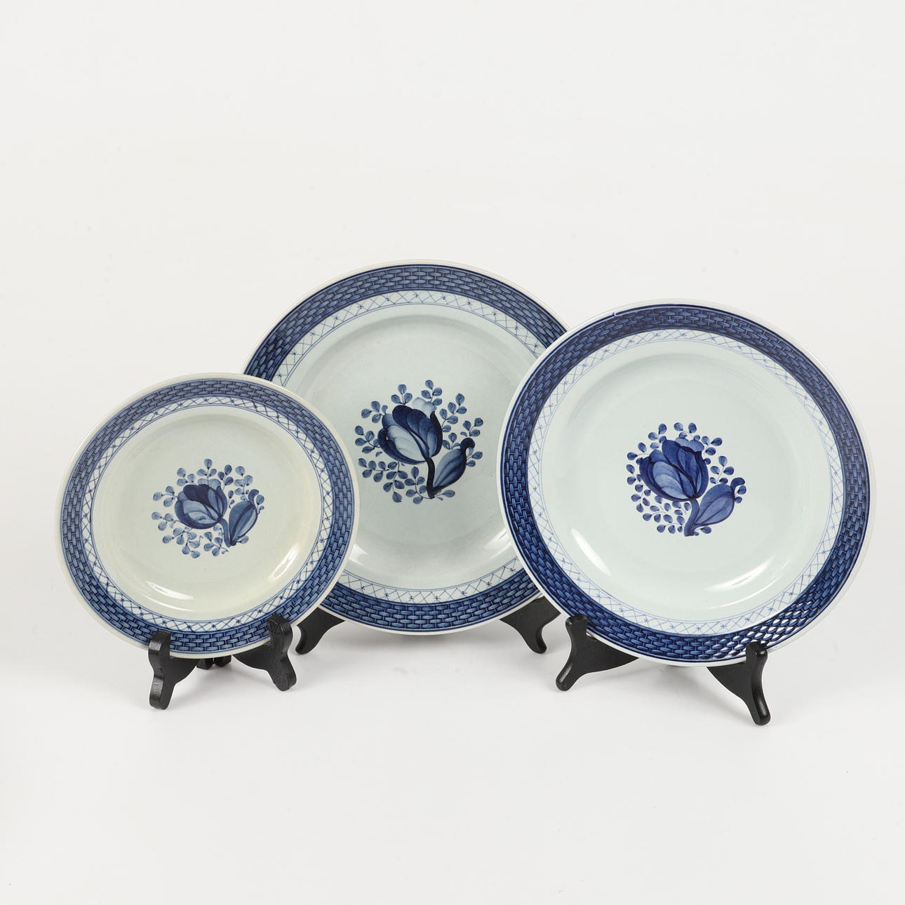 8 lautasta halkaisija 25 cm 8 lautasta halkaisija 23,5 cm 8 lautasta halkaisija 18,5 cm 1 lautanen 28 x 20 cm 1 kulholautanen 29 x 22, korkeus 6 cm.