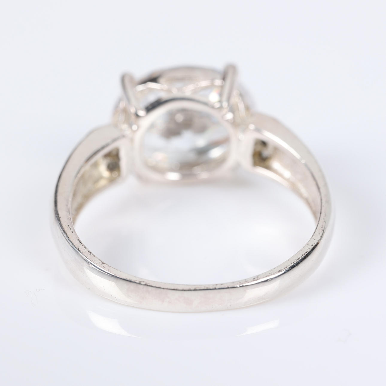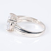Sormus sterlinghopeaa, jossa yksi soikea leikkaus ja 6 briljanttileikattua kuutiometristä zirkoniaa, leimattu VJ by IL, 925 Sormuksen koko 16 mm.