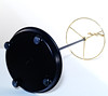 Messinkiä ja mustaksi lakattua peltiä. Korkeus 63 cm.