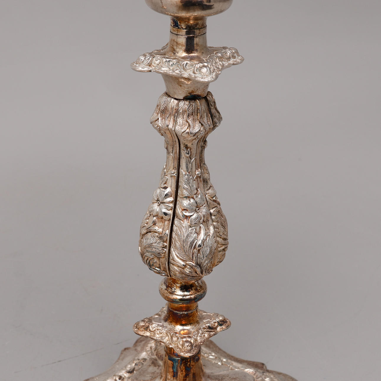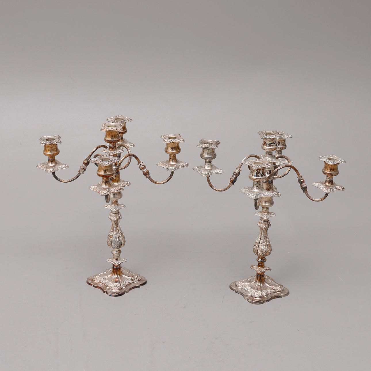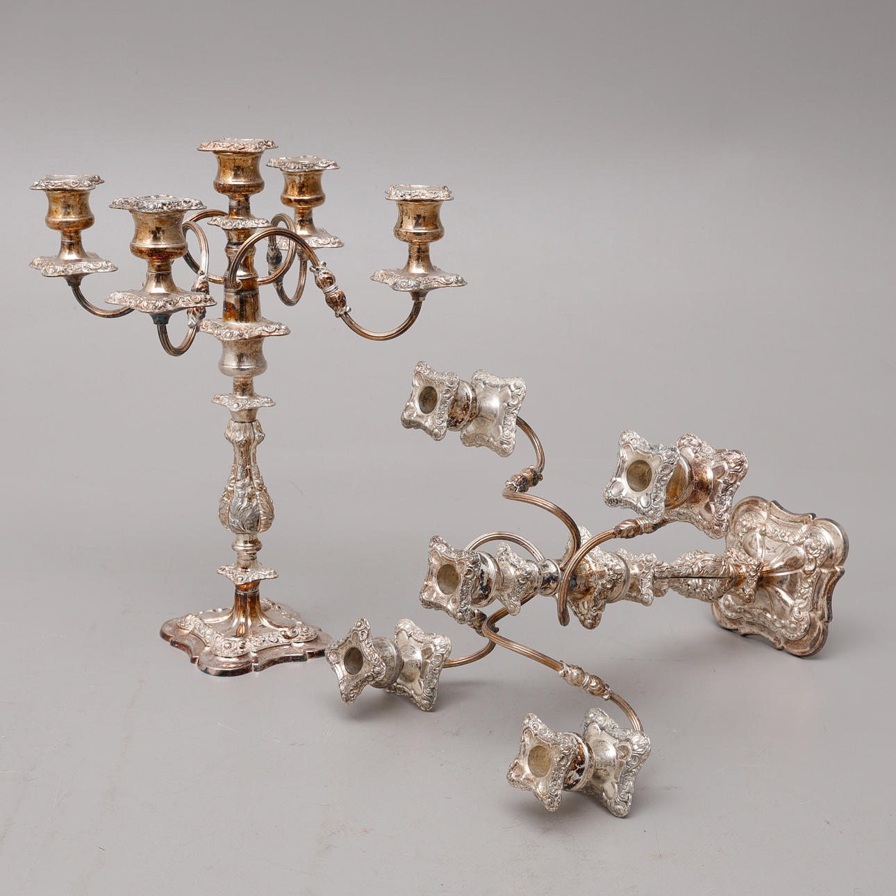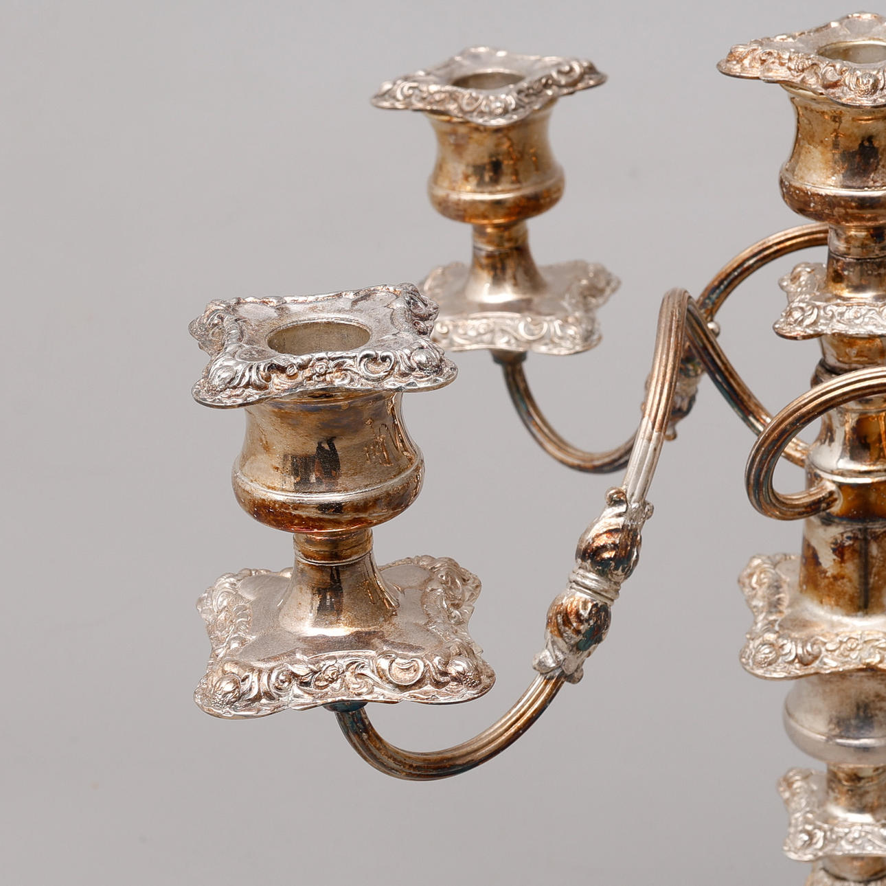 Viidelle kynttilälle, irrotettava kansi, kaarevat kynttilänvarret ja löysät kynttilän hihansuut. Kokonaiskorkeus n. 45 cm.