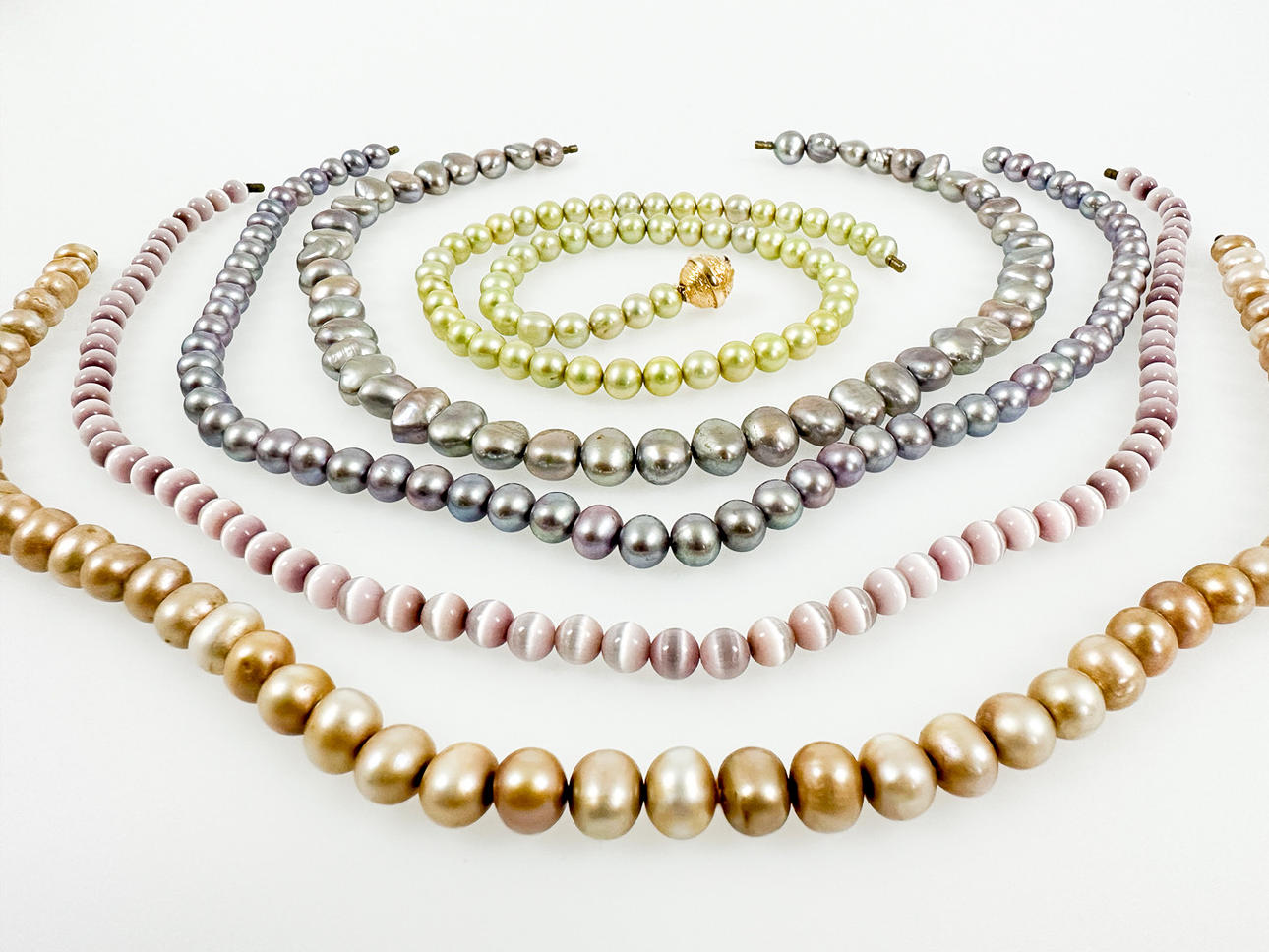 3074769. PER BORUP. KAULAKORU, 5 helmiketjua, 18K lukko.