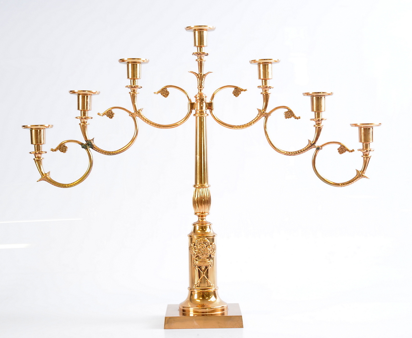 310950. KYNTTELIÄ, 7 kynttilään, messinki.