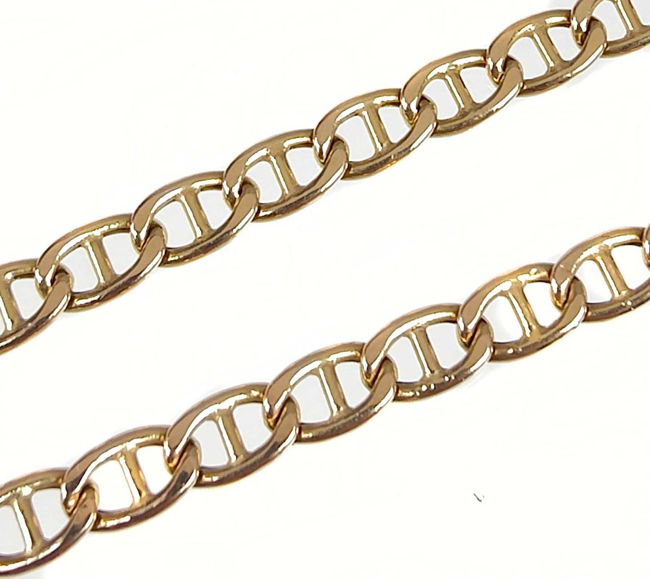 585 keltakultaa (14 karat) työstetty ja leimattu, isolinkkinen panssariranneke, n. 4,2 mm leveys, i