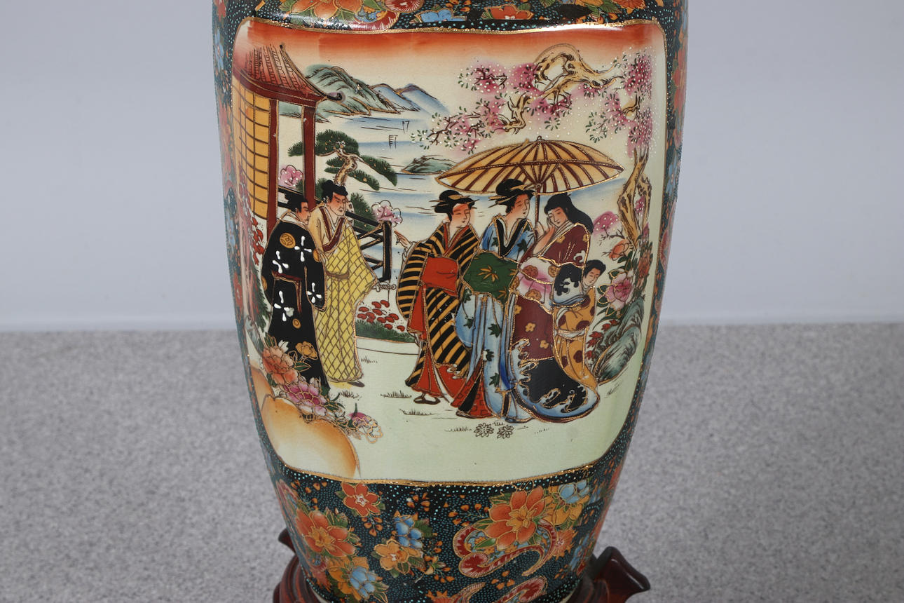Posliini pysyvästi asennetulla puupohjalla. Japanilainen. 1900-luvun toinen puoli. Kokonaiskorkeus n. 103 cm.