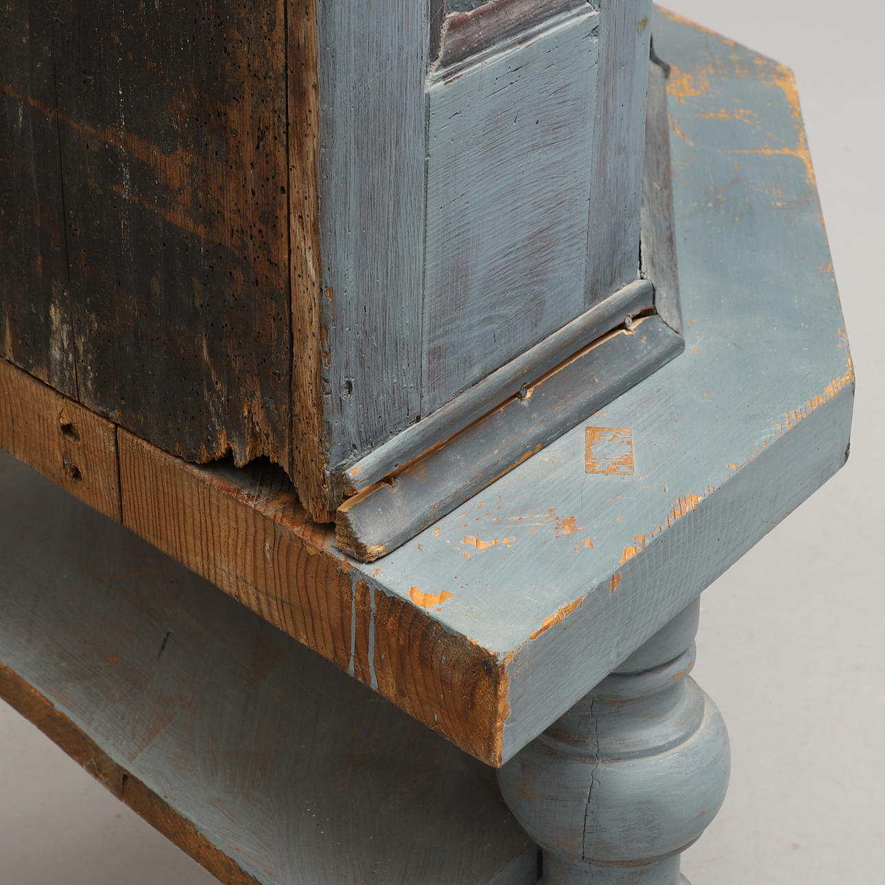 Ikään liittyvä kuluminen. Löysät listakappaleet ovat mukana. Myöhempi alusta. Myöhempi maalaus. Osittainen tartunta.