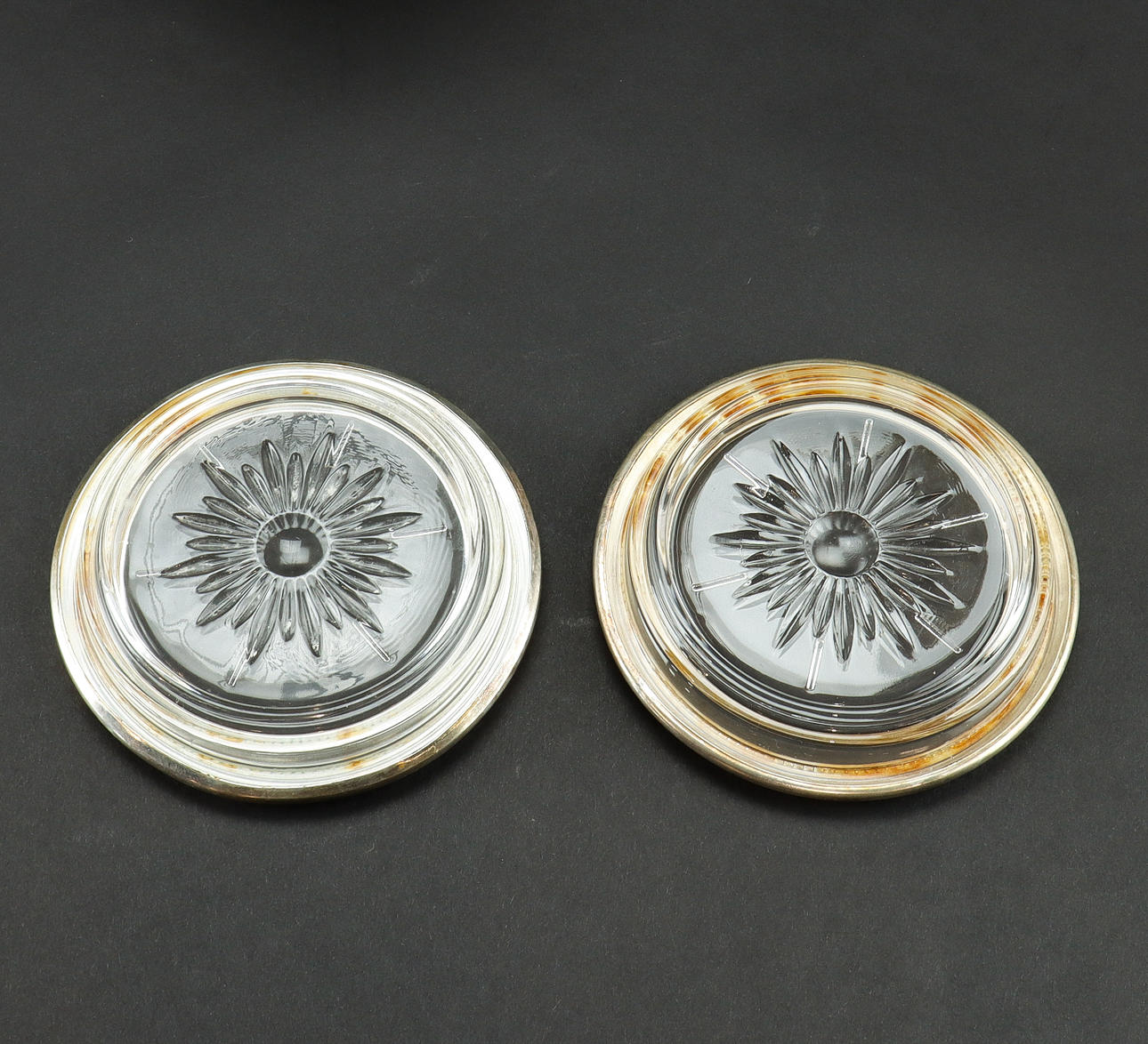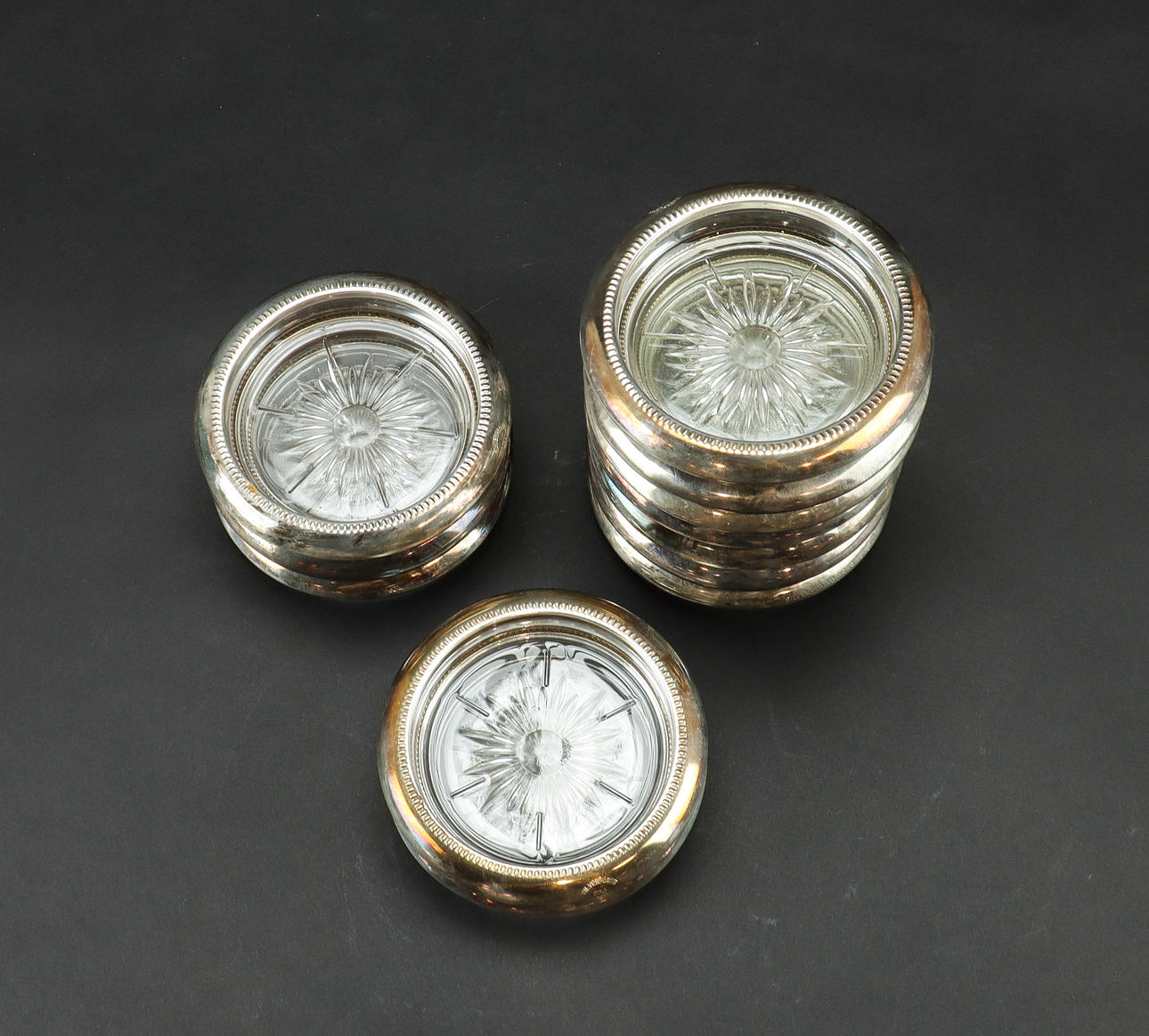 Pullonlasinaluset 12 kpl, kristalli uudella hopeareunalla.