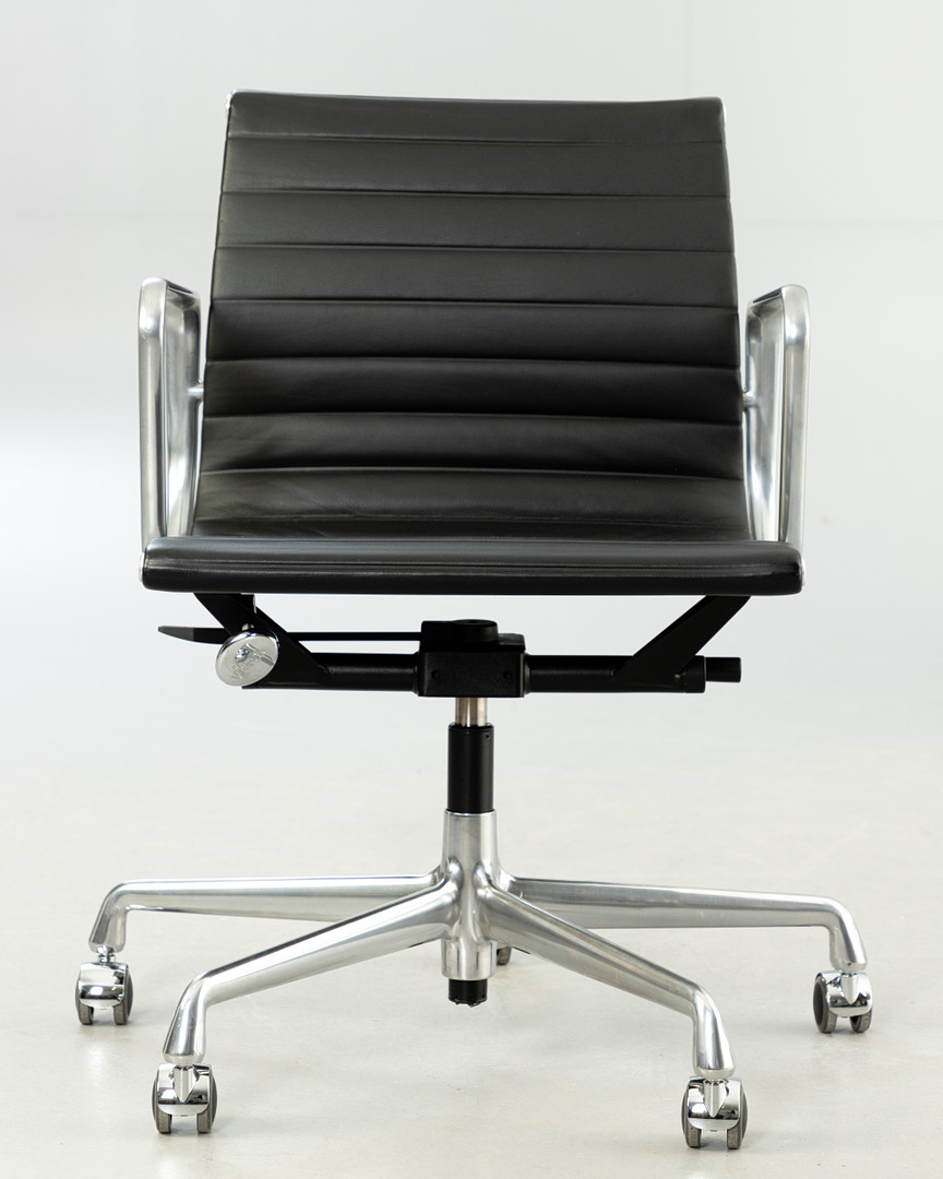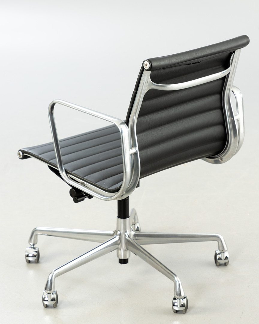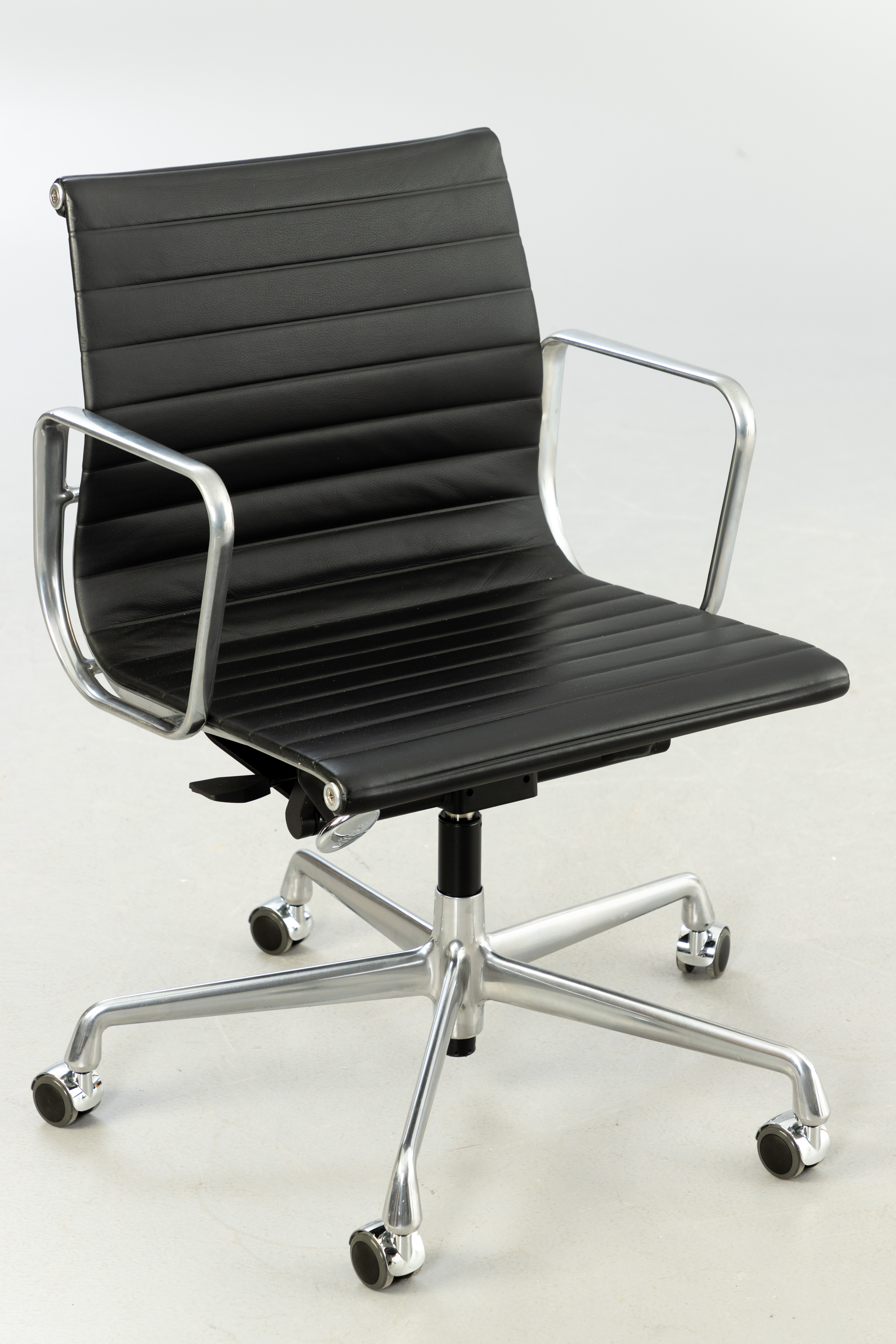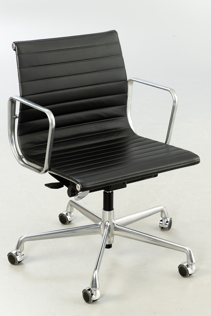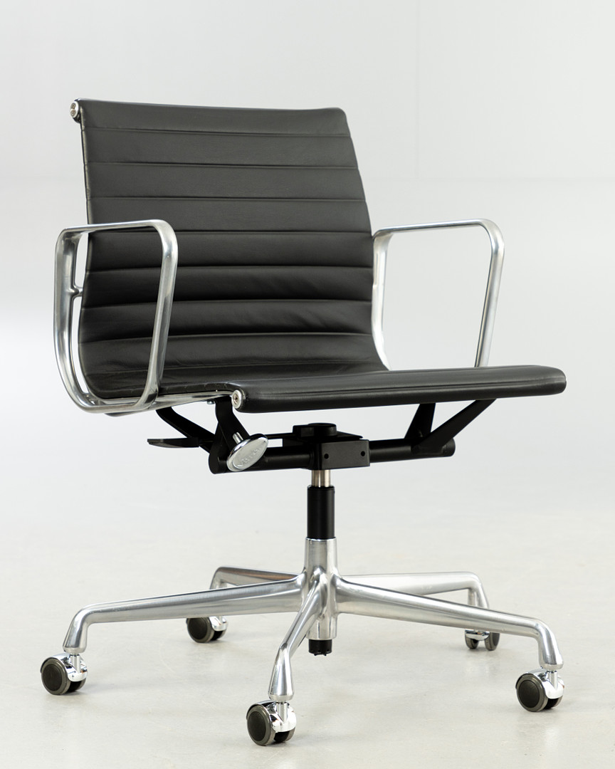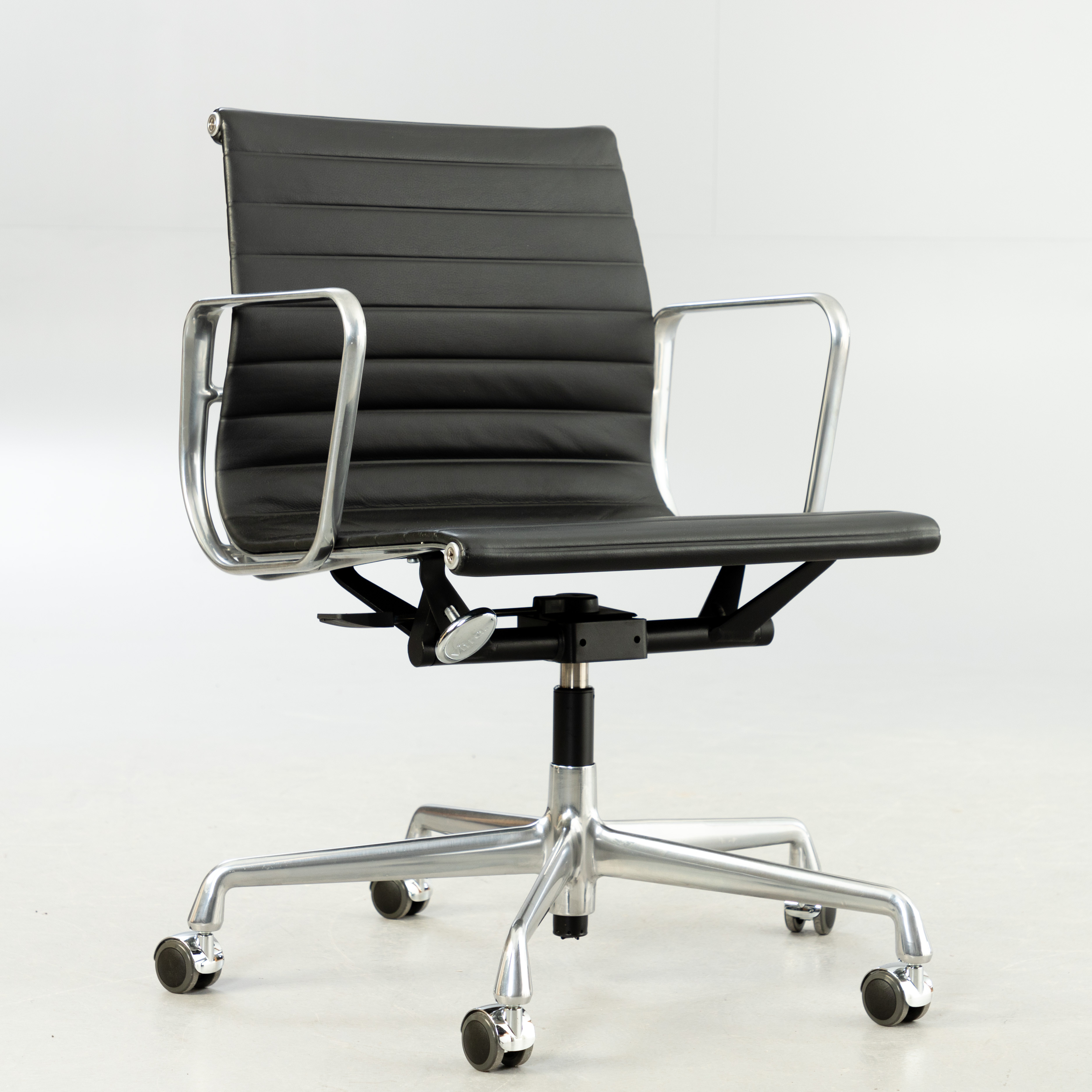 3213619. RAY & CHARLES EAMES. Vitra. Työtuoli 'EA 117', musta nahka.