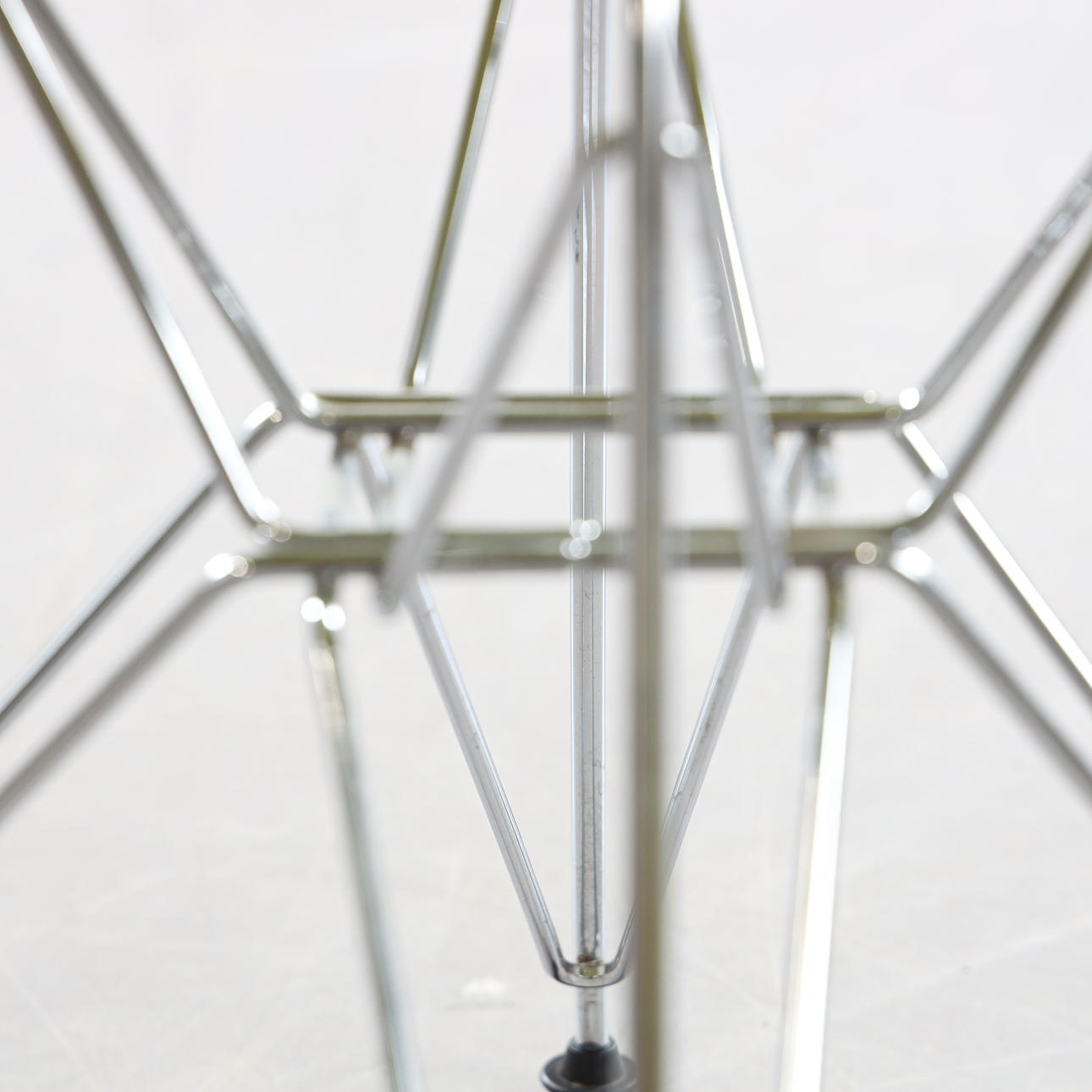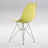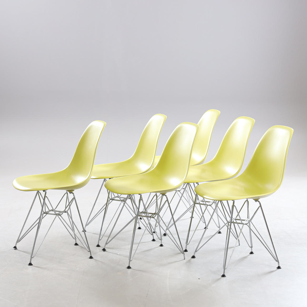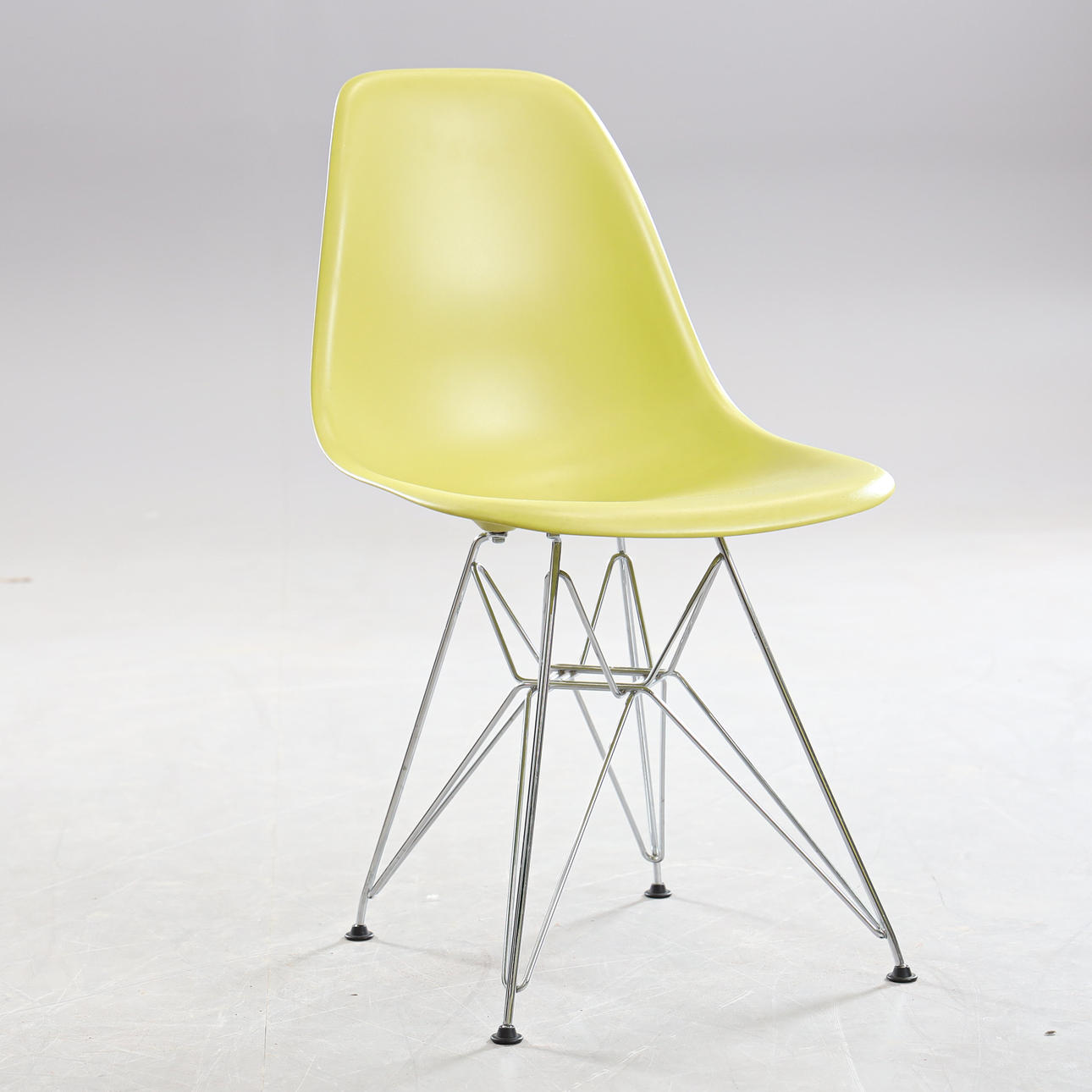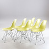 Muoviset valetut istuimet. Jalkateline kiiltävää kromattua metallia. Istuinkorkeus n. 44 cm.
