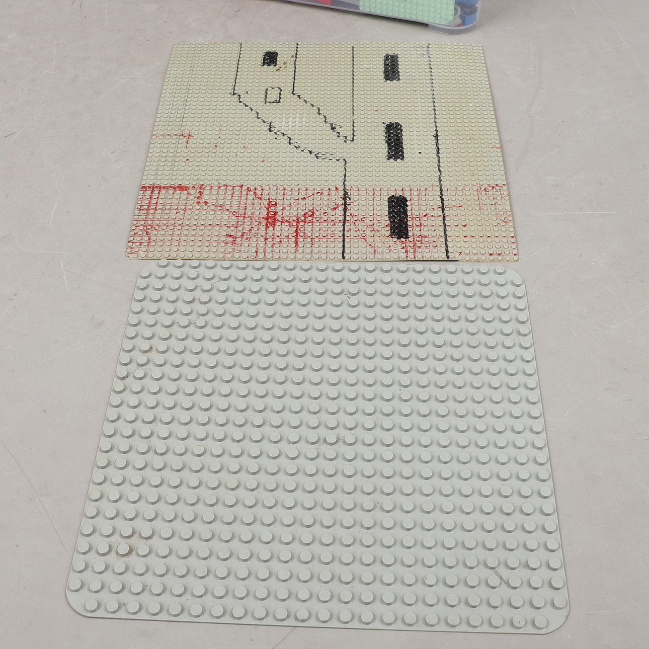 Rakennuslevyillä legoille ja duploille Sisältää laatikon.