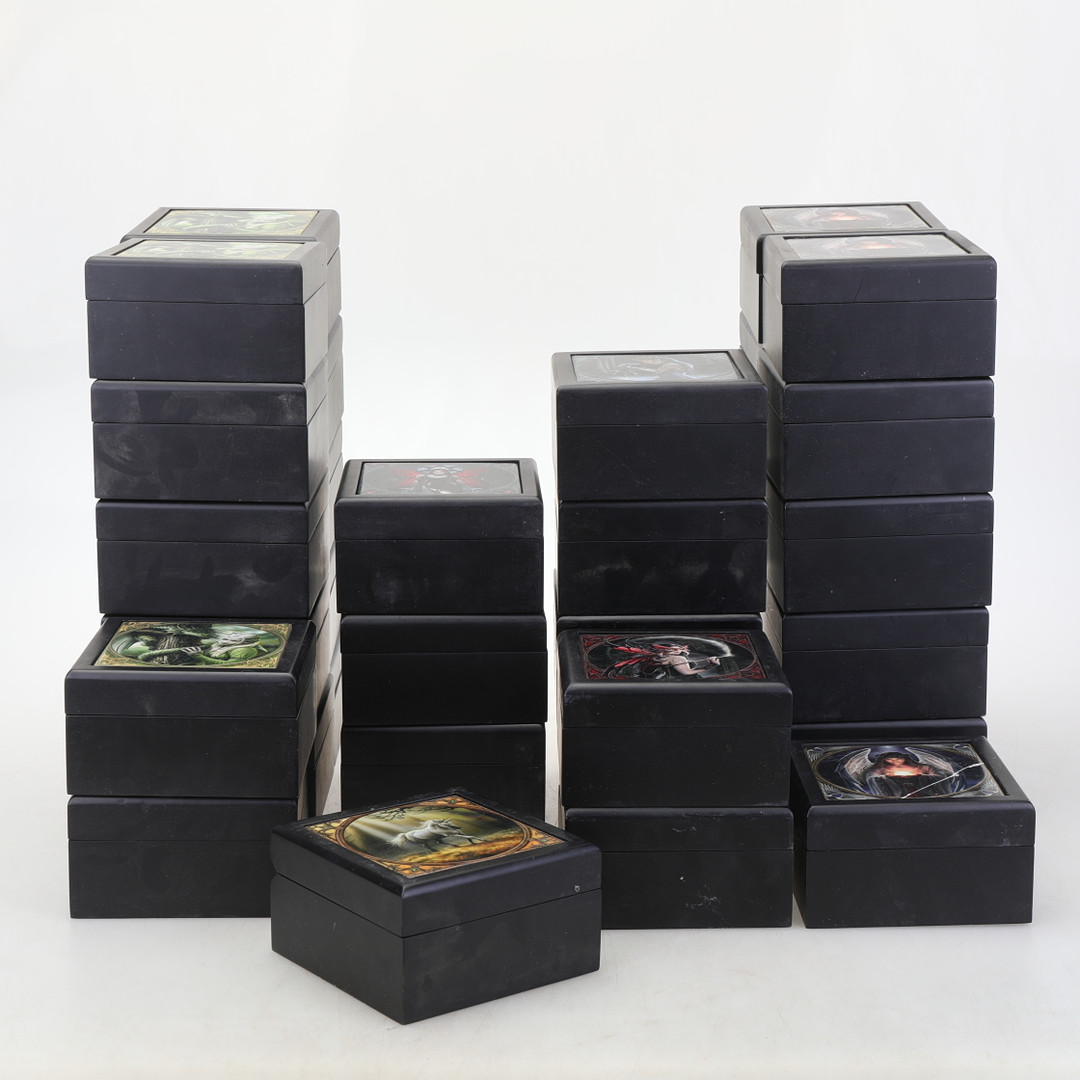 3239115. PUULAATIKOT, keraamisella levyllä, 33 kpl.