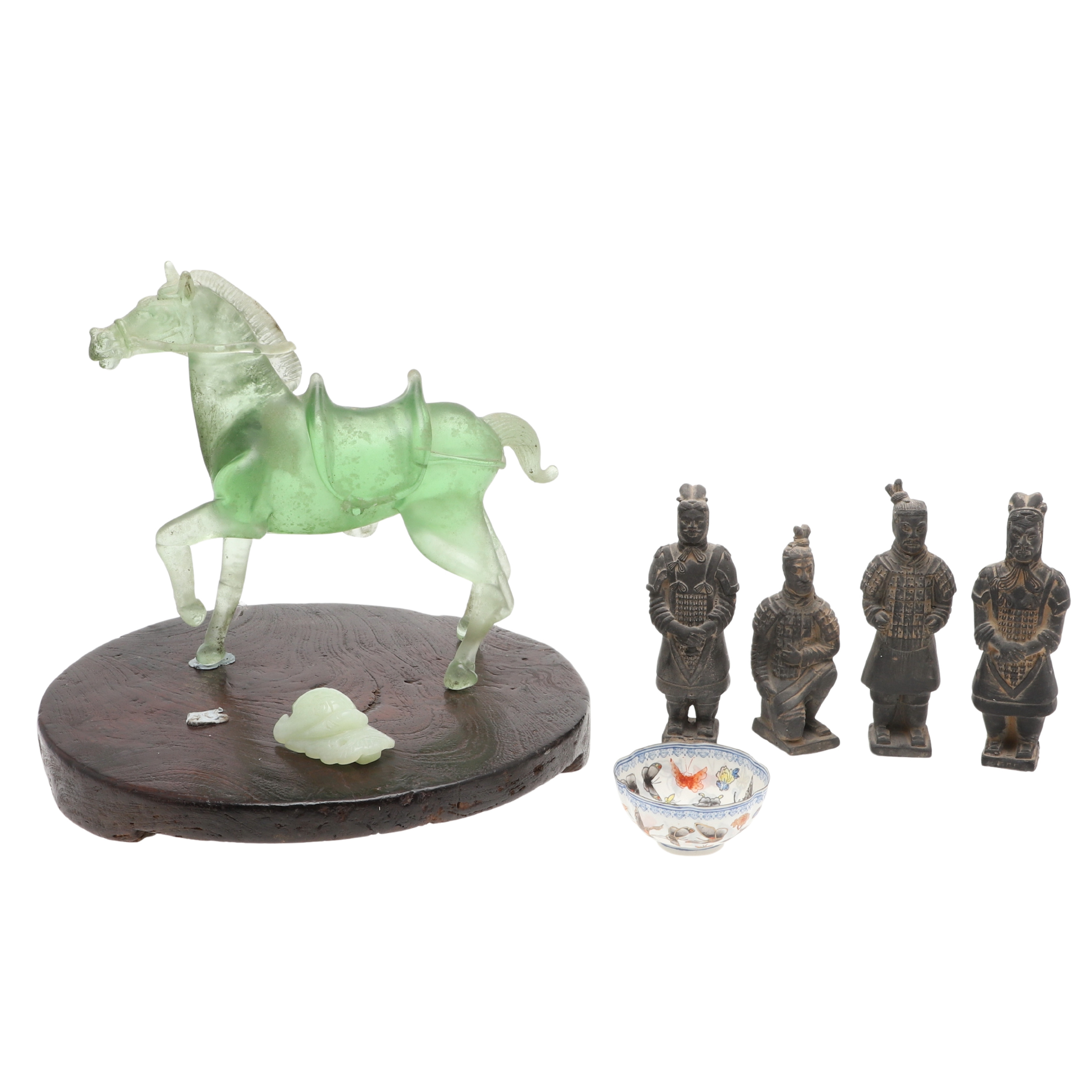 3258181. MODERNI KIINALAINEN JADE-SOLKI JA VALIKOIMA ESINEITÄ.