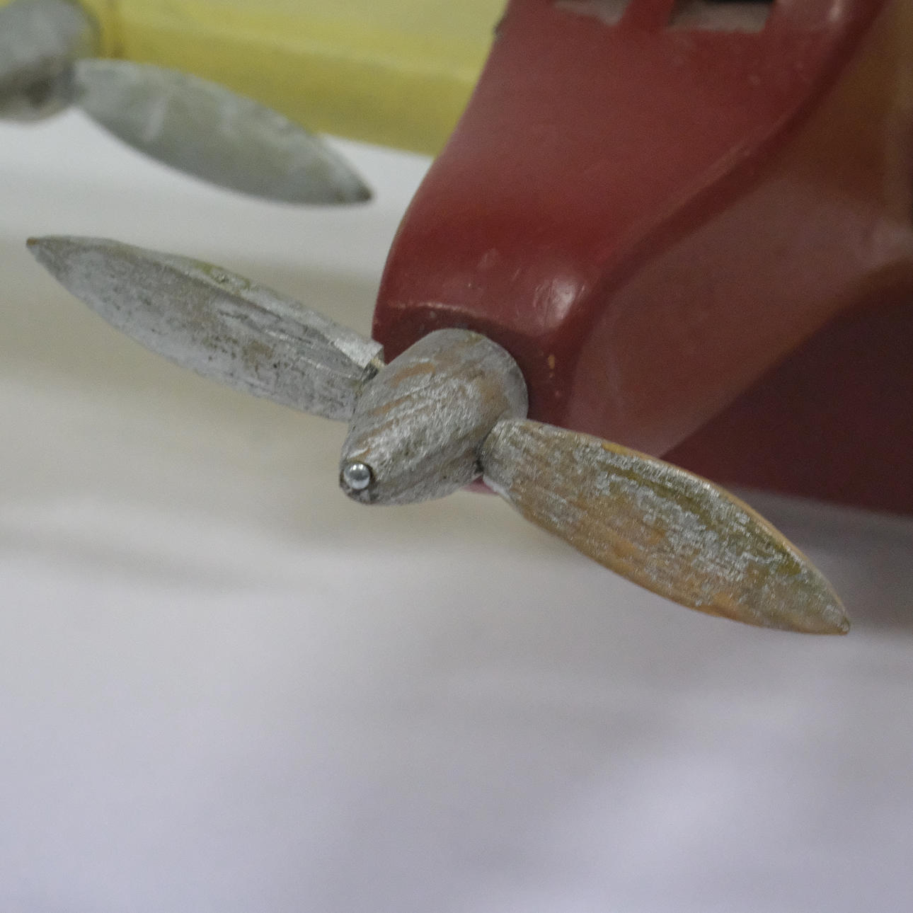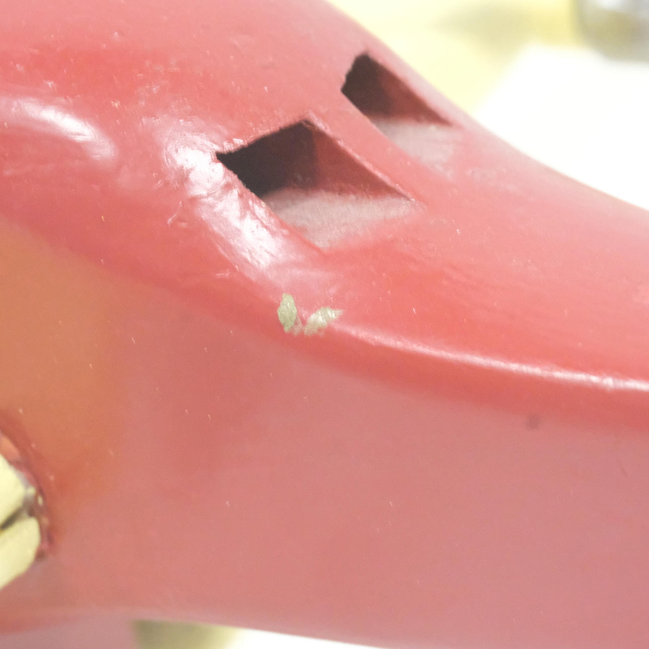 Kuluminen, myöhemmin maalattu, siipi halkeamalla/korjattu.