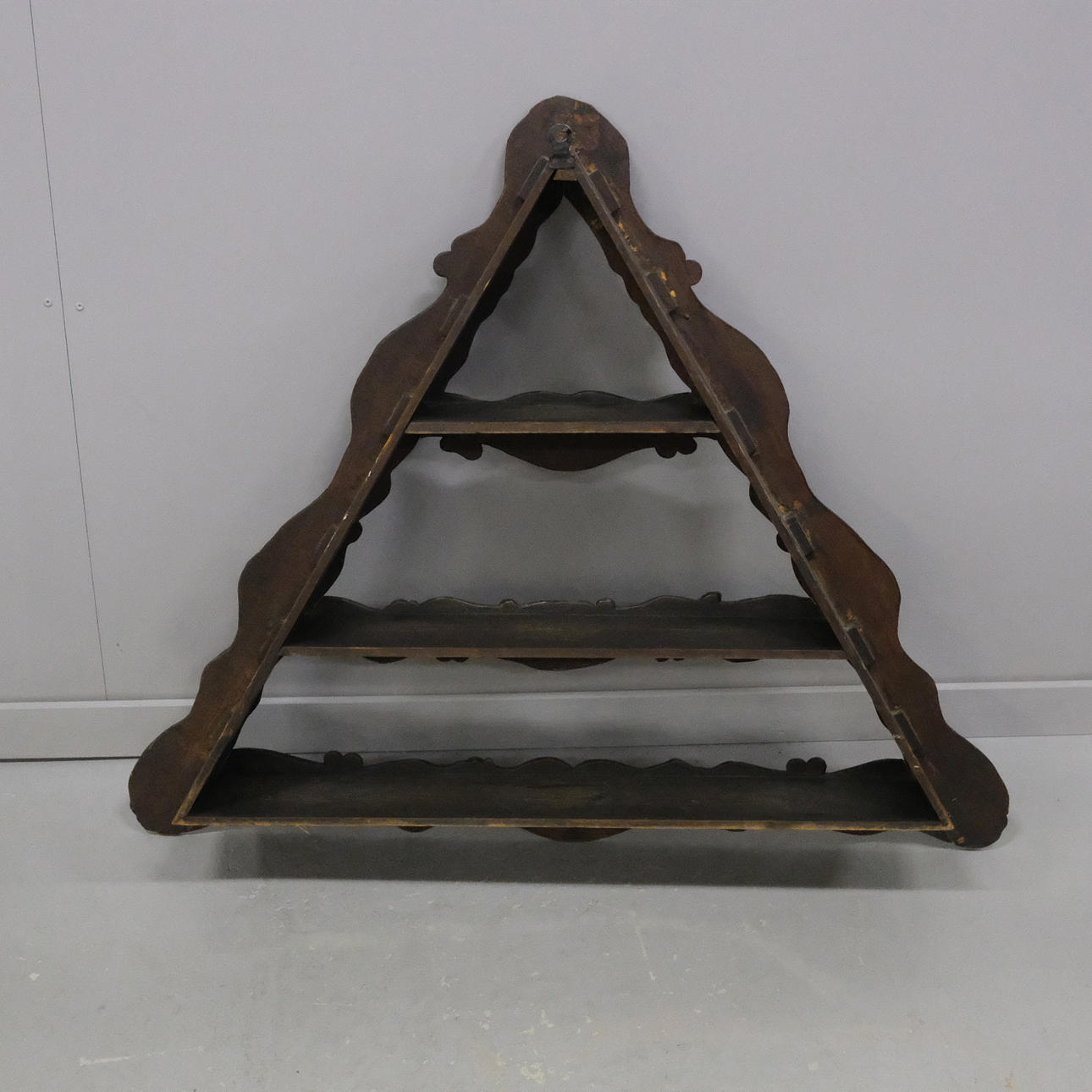 Kolmion muotoinen, korkeus 80cm, pituus 96cm, leveys 16cm.