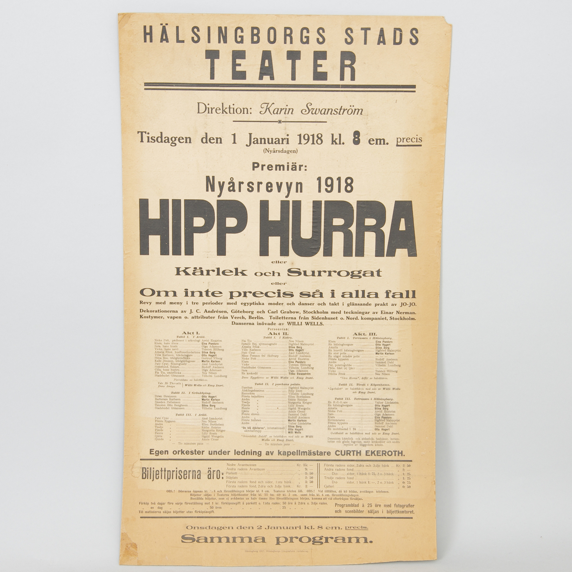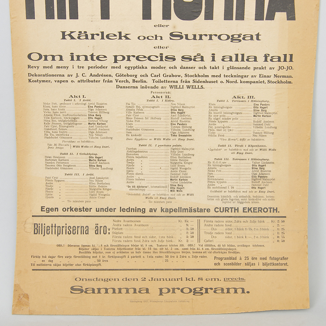 332081. Teatterijuliste, Helsingborgs Theatre, 1918.
