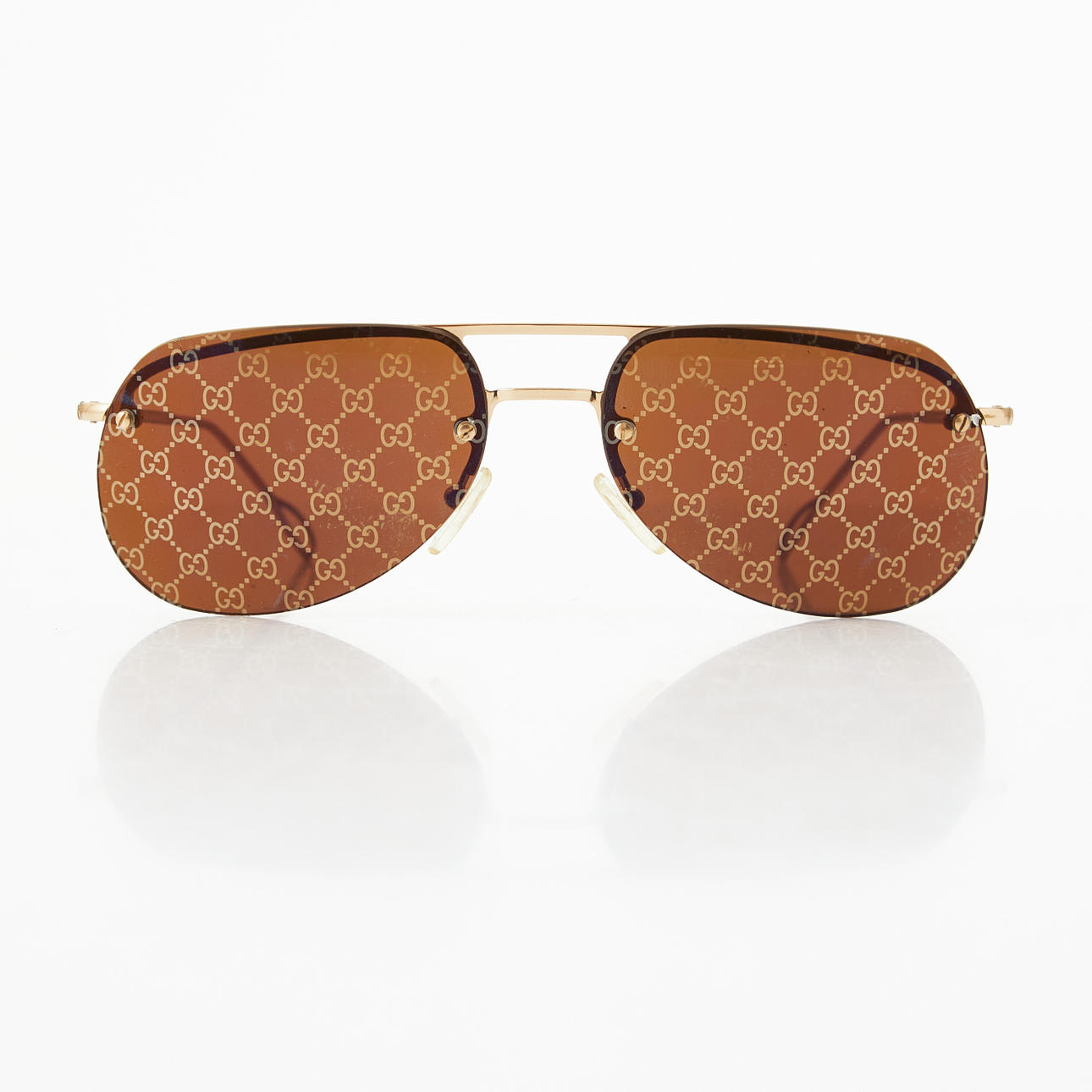 kullanvärinen, ruskeansävyinen monogrammikuvioinen lasi, 140 GG 1292/S/B 000V1 59 #16. Mukana kotelo ja puhdistusliina.