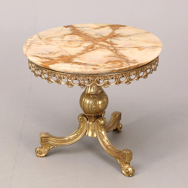 333845. PÖYTÄ, kivitaso, messinki, 1900-luku.