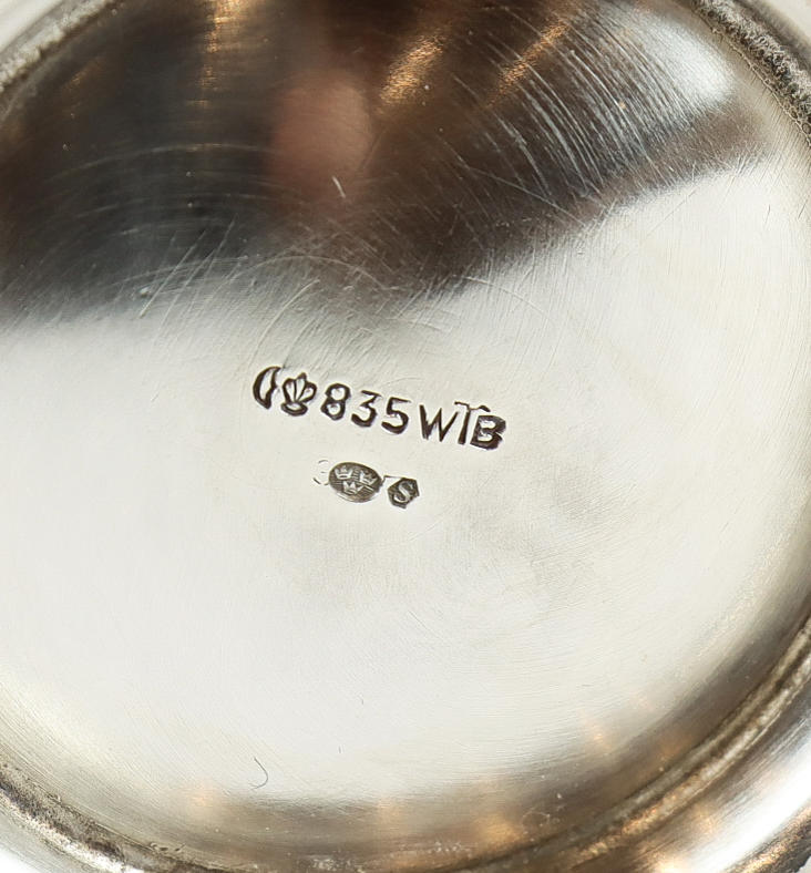 3338918. TARJOILUPATA, hopeaa, puukahvalla.
