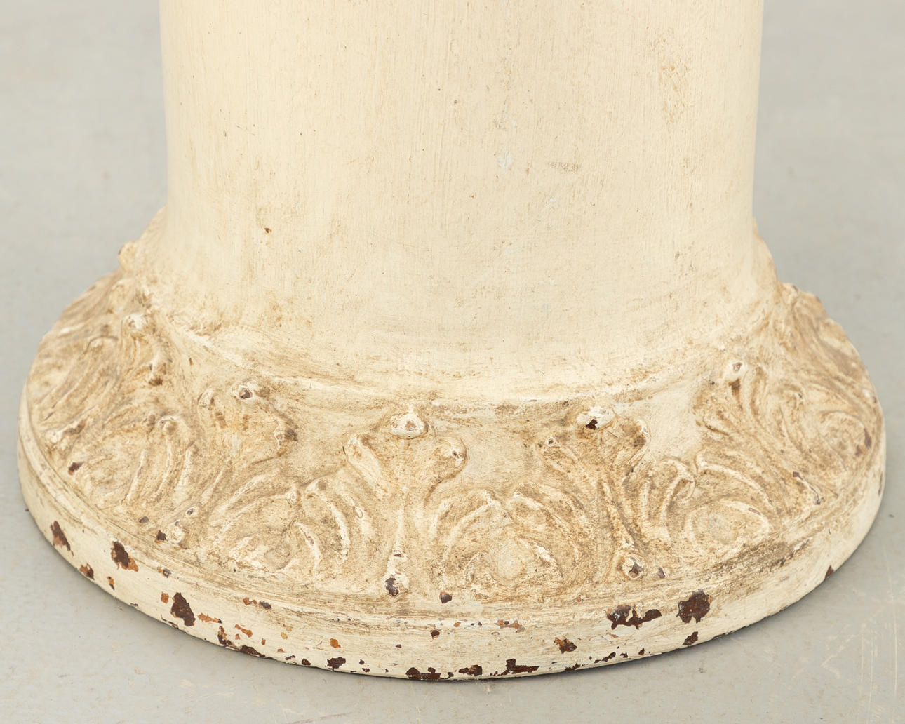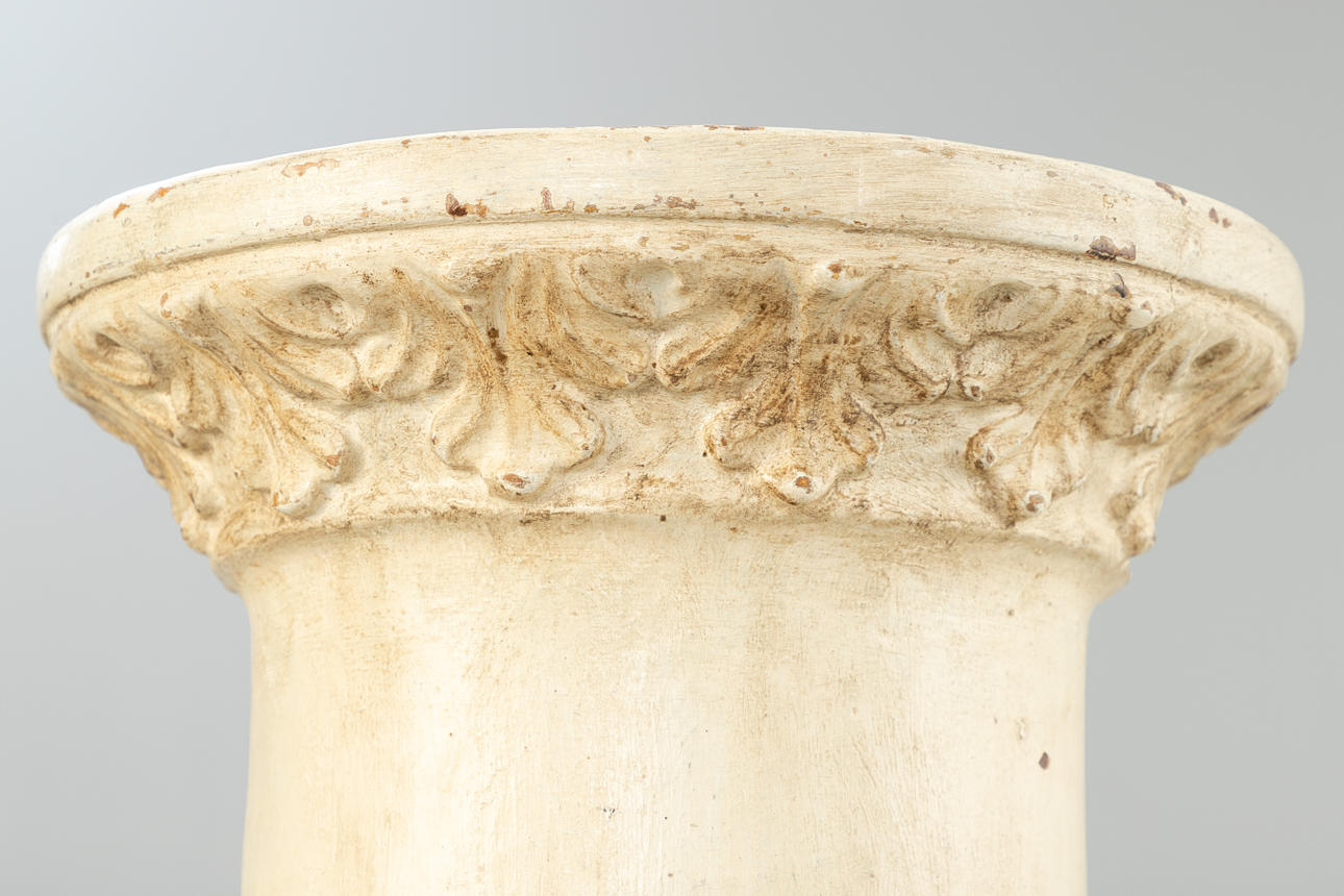 Terrakotta, kermanvärinen Pyöreä pohja ja ylälevy Lehtifriisi pyörii pohjan ympärillä ja pääkaupungissa. HxDm: n. 102 x 38 cm.