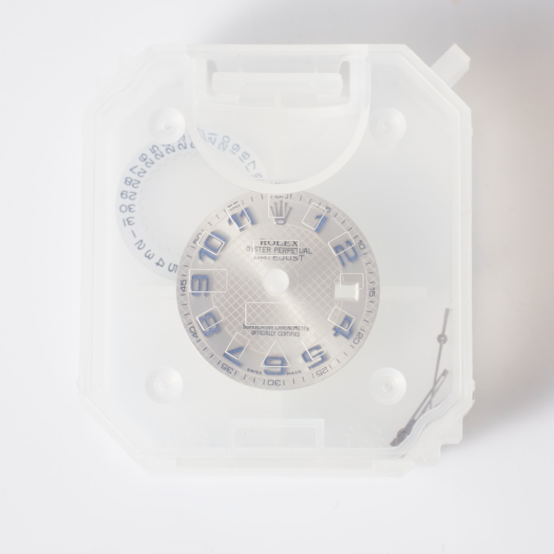 3346561. ROLEX, kellotaulu, Datejust, hopea.