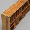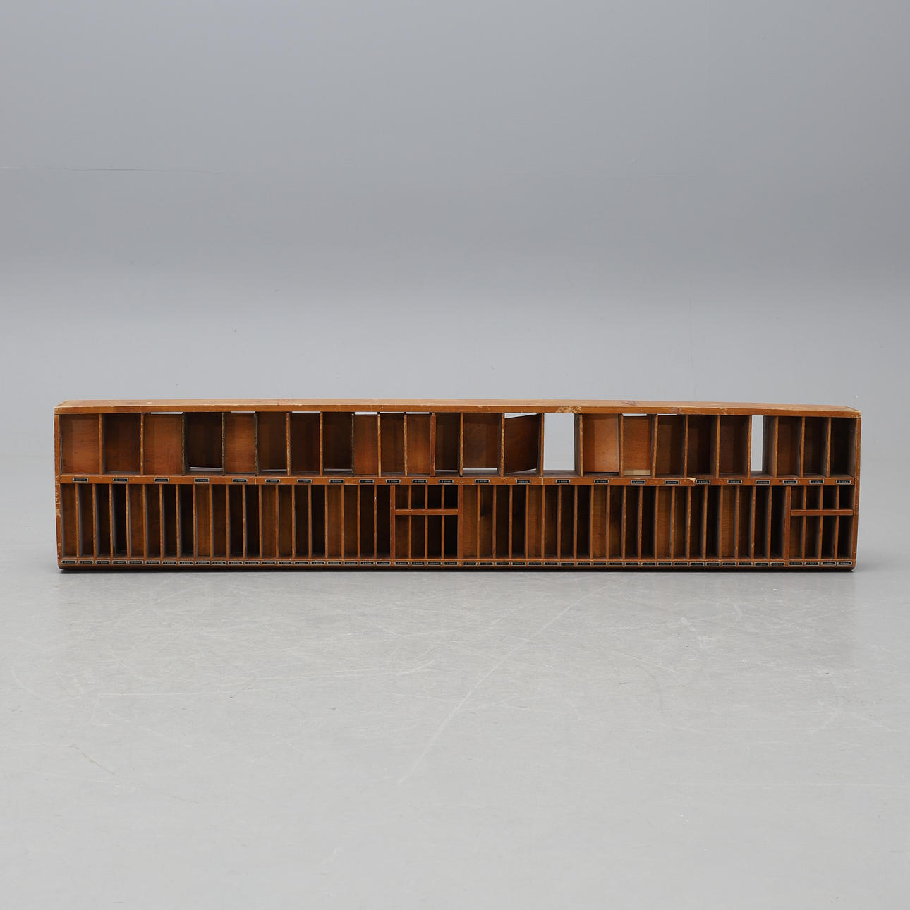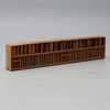 Puu. Sisustus osastoilla. Pituus 160, korkeus 33, syvyys 13 cm.