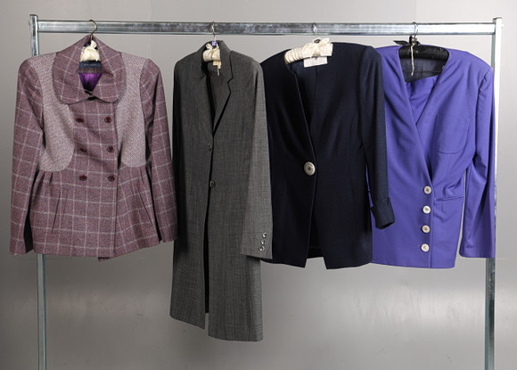 Kuuma vaaleanpunainen tekoturkistakki, jossa valkoinen vinyyliverhoilu, vaaleanpunainen turkishame, hopea lamé-yläosa, vastaava letku, valkoinen vinyylivyö, hopeinen lamé-letku ja harmaat nilkkurit, vaaleanpunainen Barbie-ripustin
