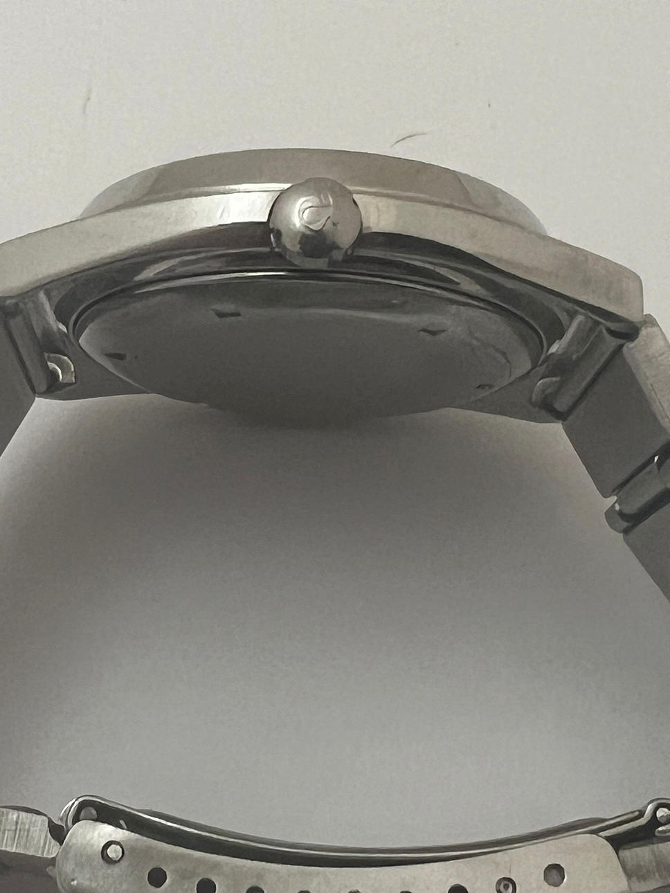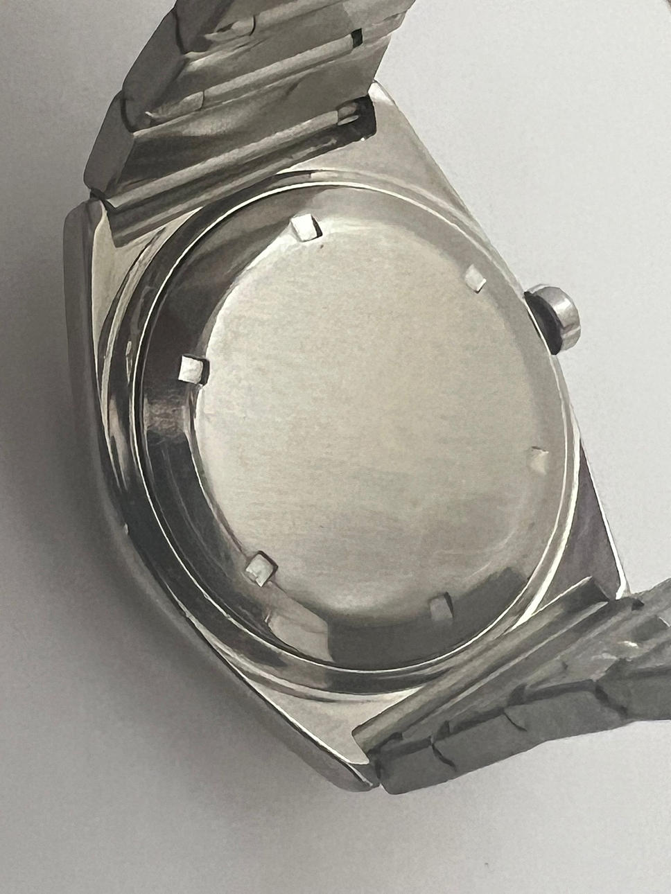 Teräskotelo, jossa alkuperäiset teräsarmeijat ja delloyant-lukko. Päivän päivämäärätoiminto. 1970-luku Automaattinen liike.