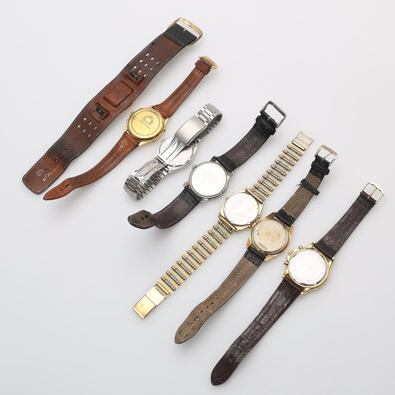 Kokoelma sekoitettuja miesten rannekelloja.