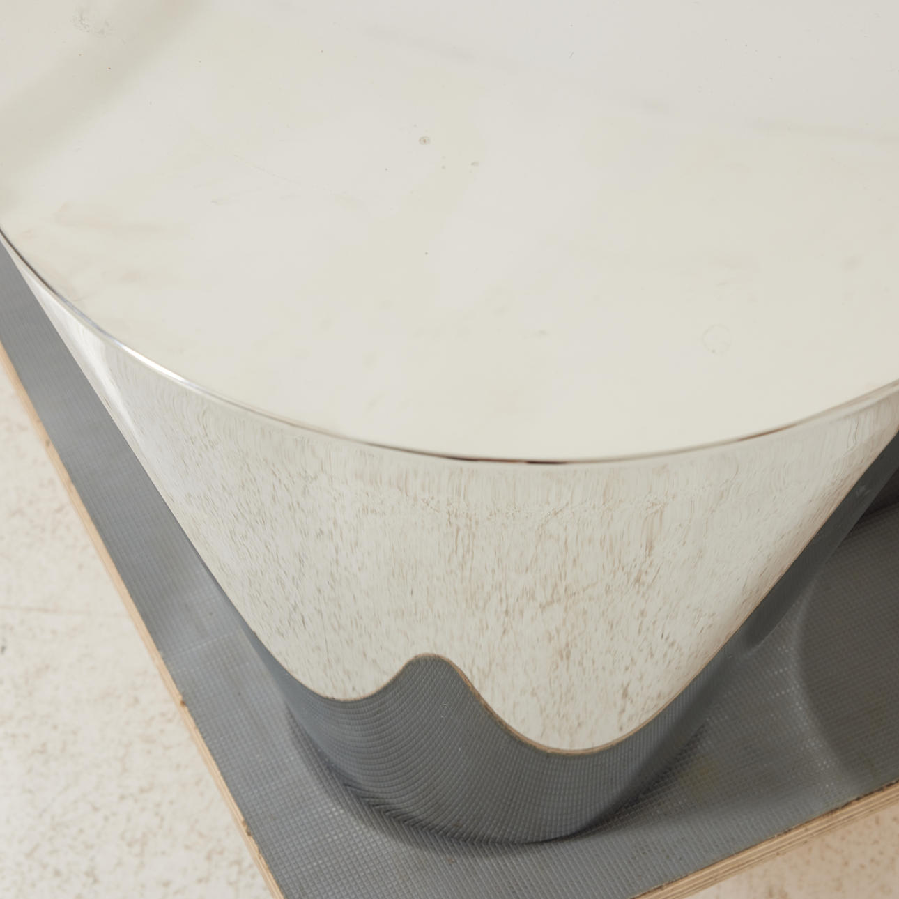 Orgaaninen muoto kiillotettua ruostumatonta terästä.