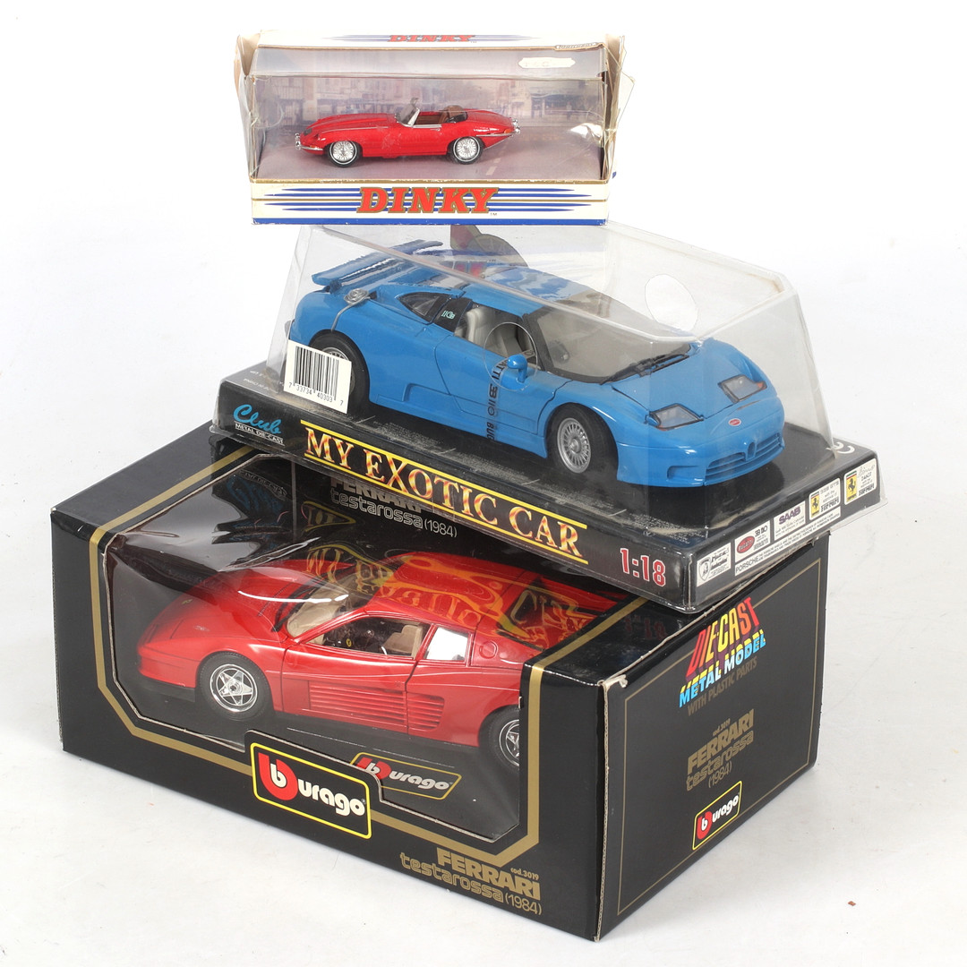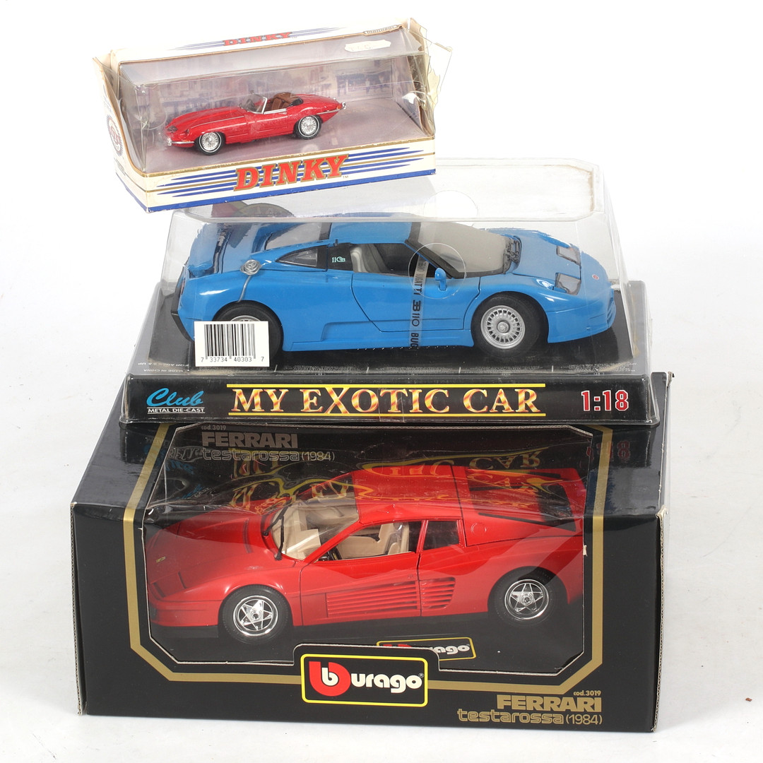 3389340. MALLIAUTOT, Jaguar E-tyyppi, Bugatti EB 110, Ferrari testarossa.