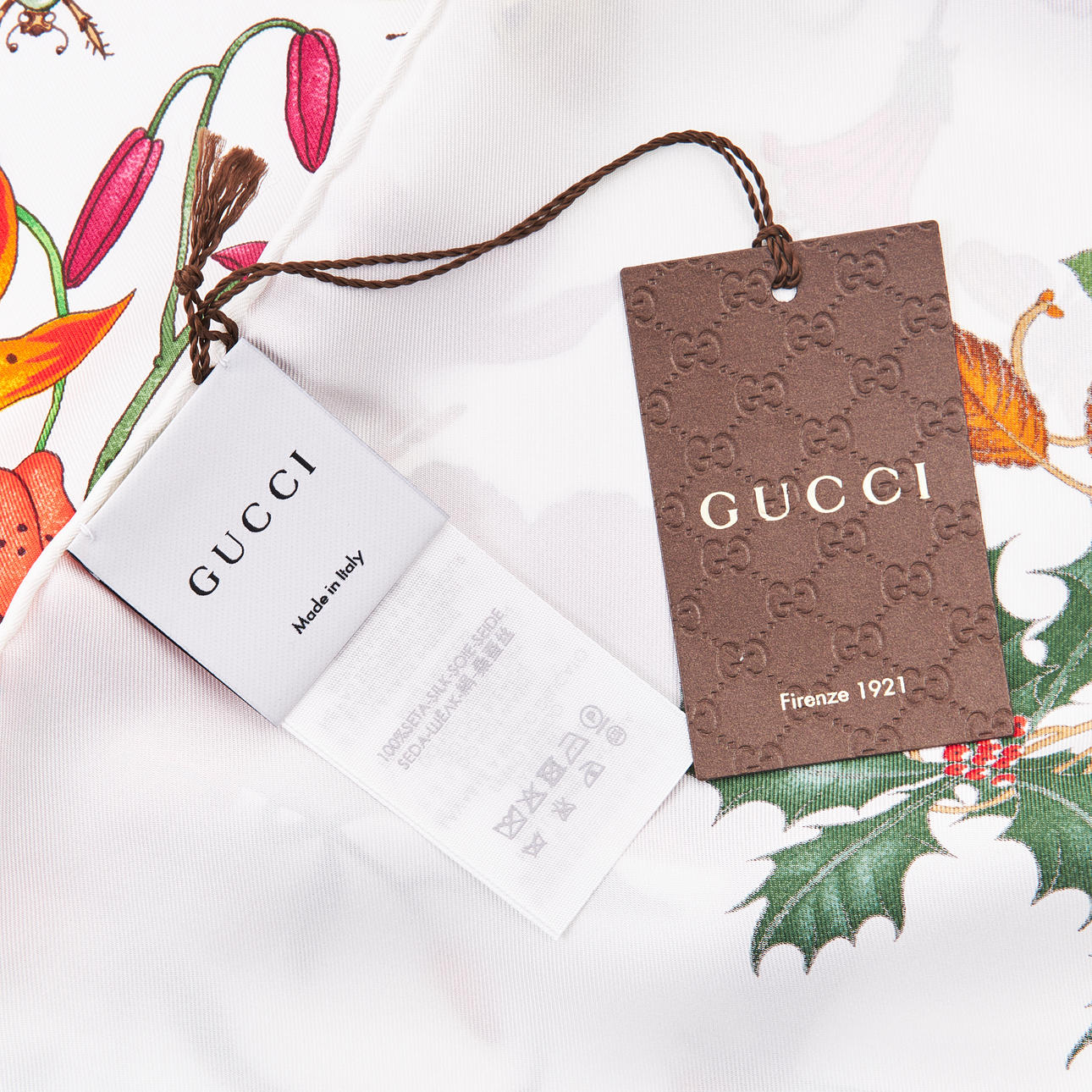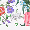 Sildenwill. Kukat valkoista taustaa vasten. Signerad V. Accornero. Merkitty ”GUCCI Made in Italy”. 90 x 90 cm.