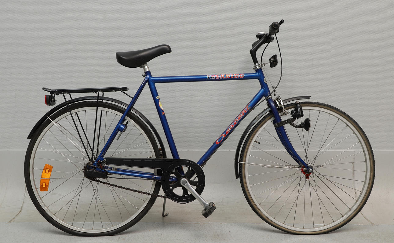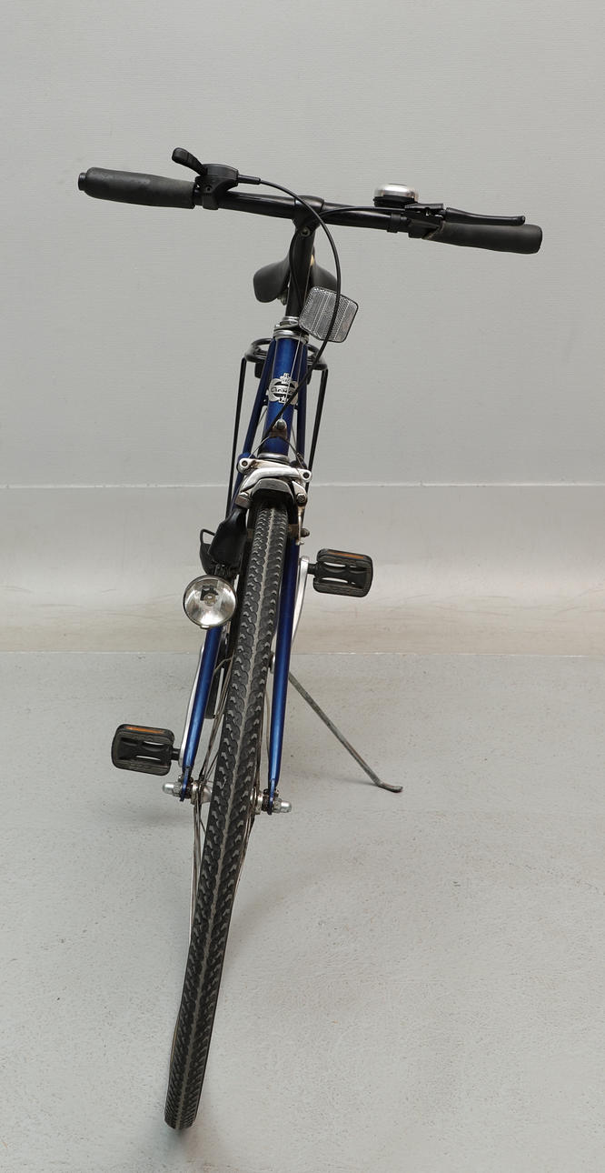 Kulunut satula. Arpeutunut metalli. Ruostetta. Ei ilmaa renkaissa, epäselvä toiminta renkailla. Toiminnallista takuuta ei anneta.