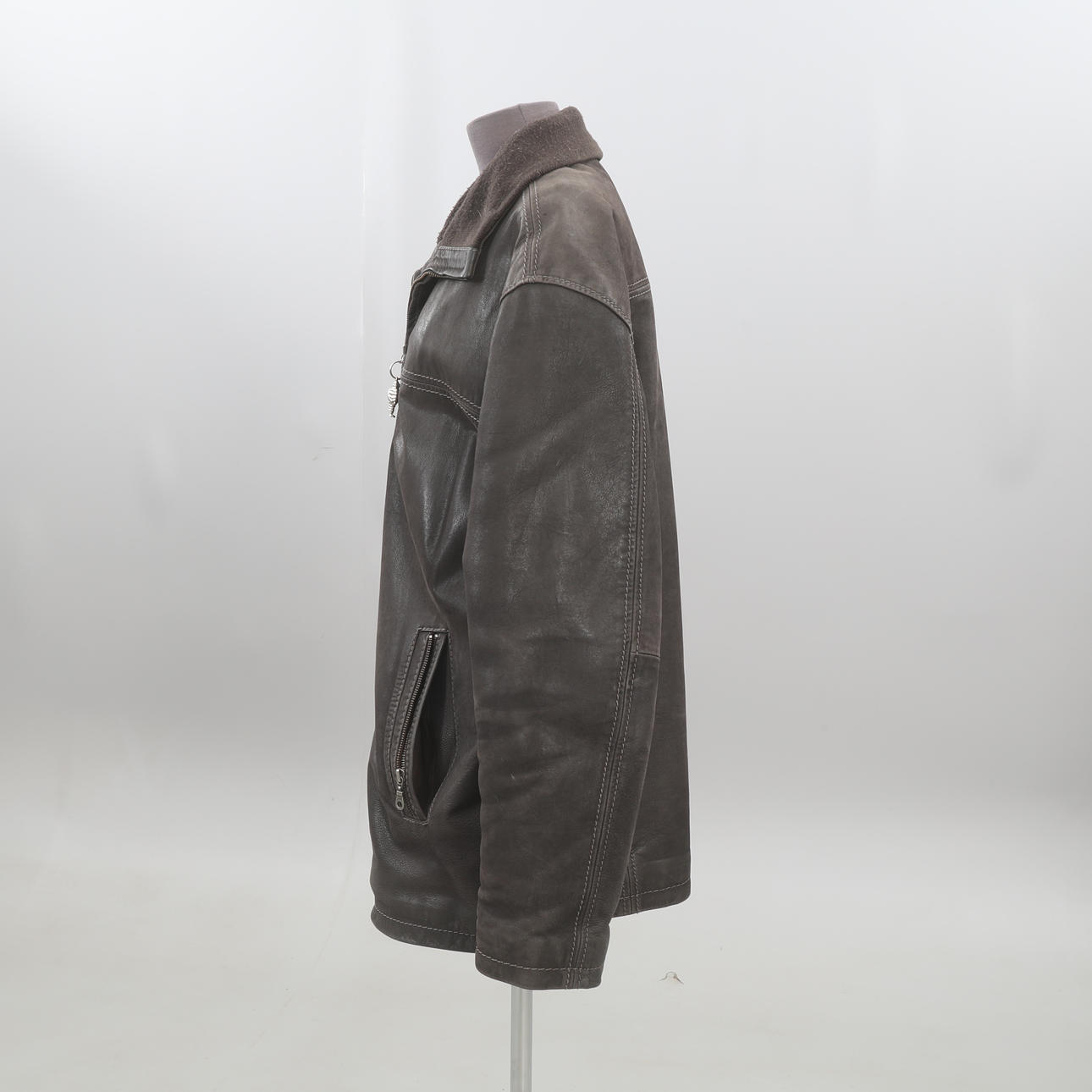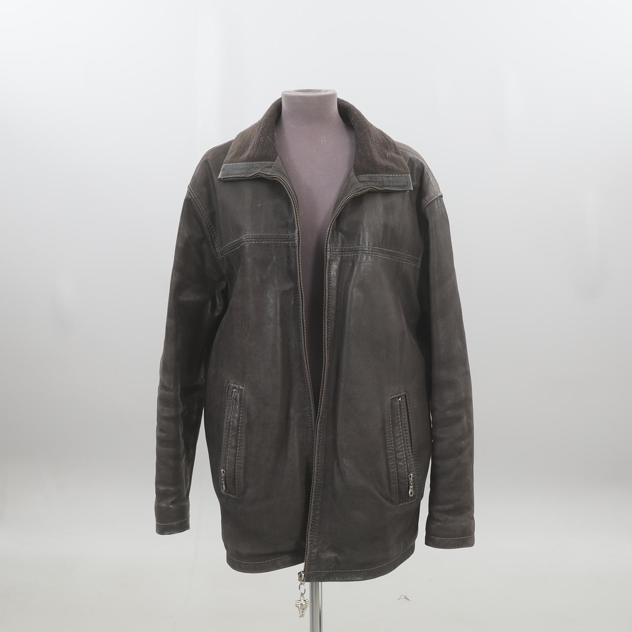 kulunut, kulunut, kulunut, reikiä taskuissa, vetoketju ilman läppiä.