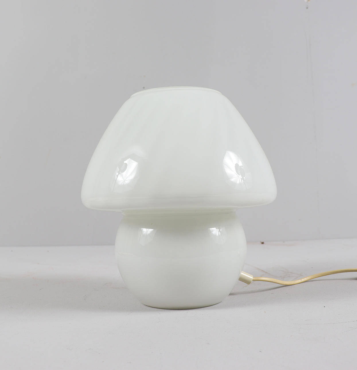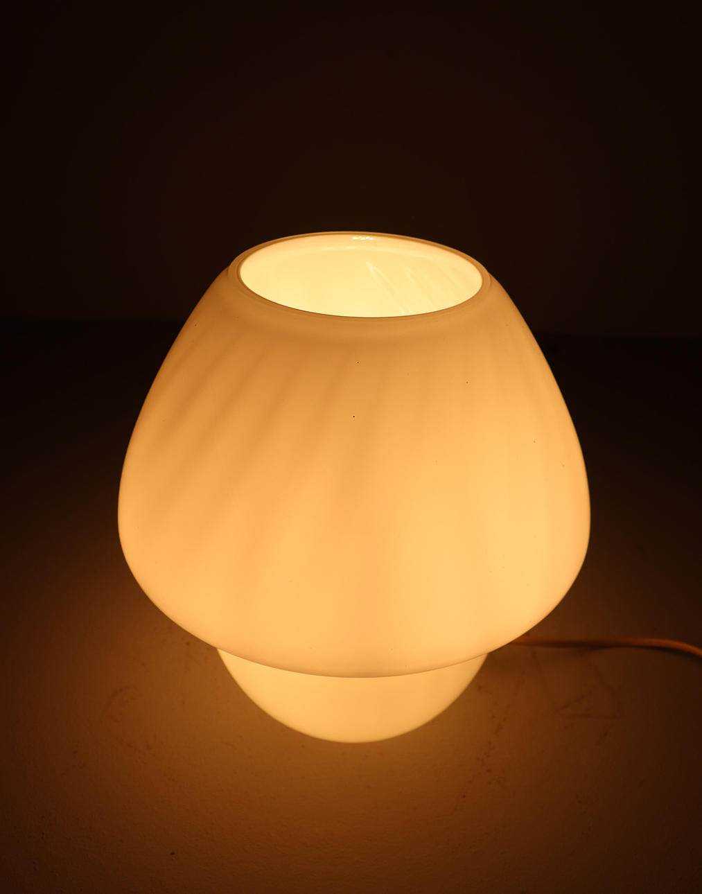 Murano-sienilamppu/sienilamppu, 1970-luku, rakenne lasista valkoisella värillä, Mitat n.: h. 26 cm, halkaisija: 25 cm.