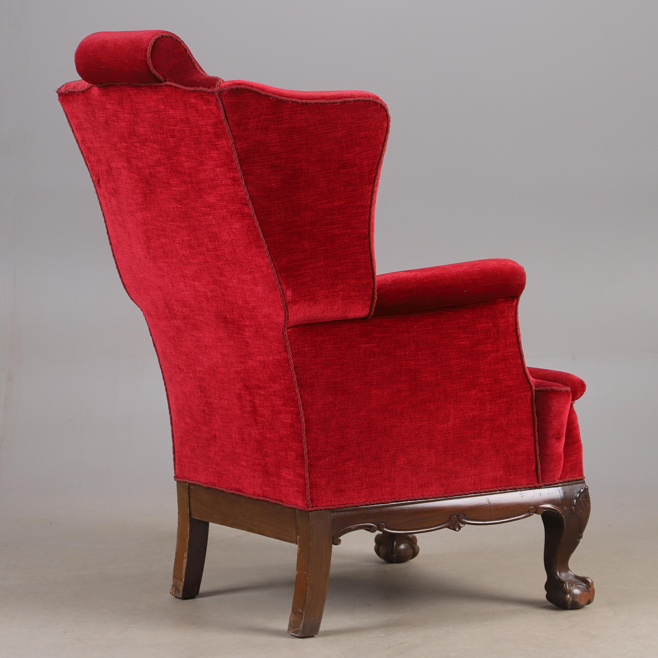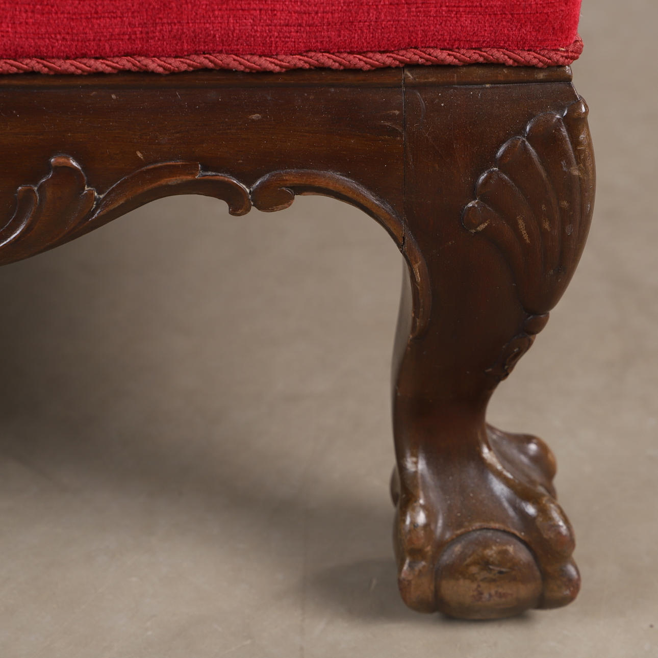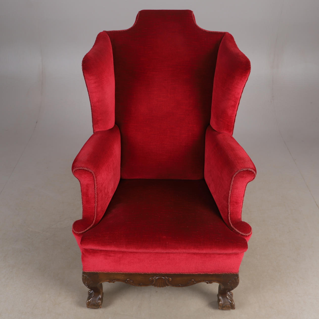 3471588. EARPATCH NOJATUOLI, punainen muhkea verhoilu, chippendale-tyyli.