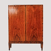 Sekametsät koivussa ja zebranossa. Ovipari takahyllyn sisäpuolella. Pituus 100, leveys 35 cm, korkeus 132 cm.