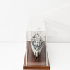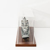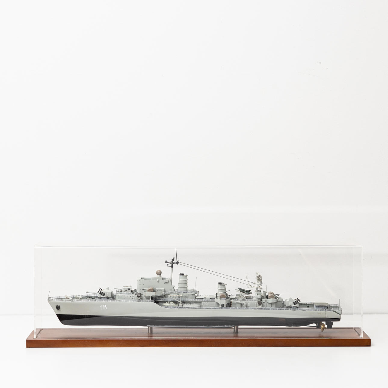Puulautanen pleksilasihupulla, pituus 68, korkeus 19 cm.