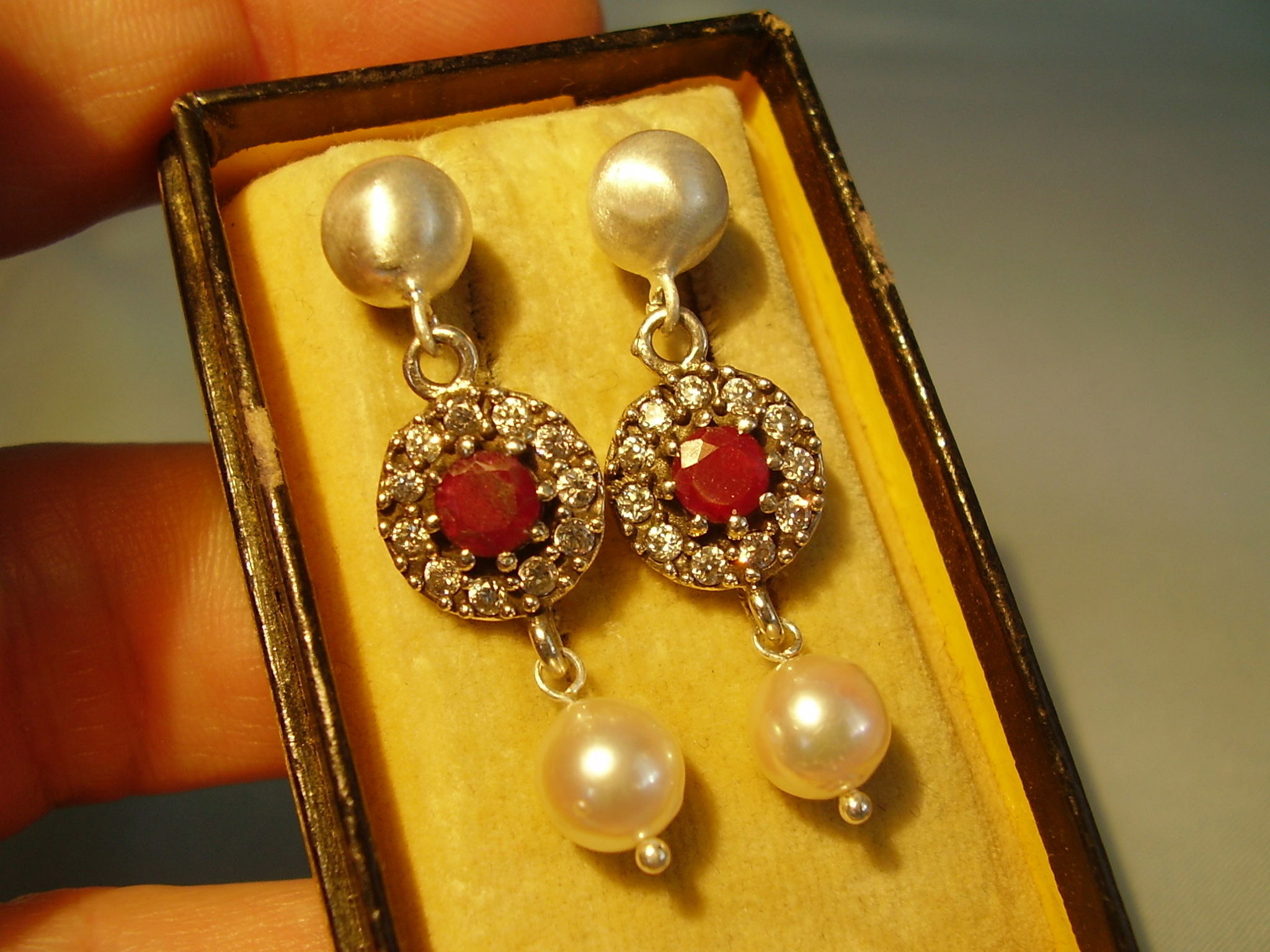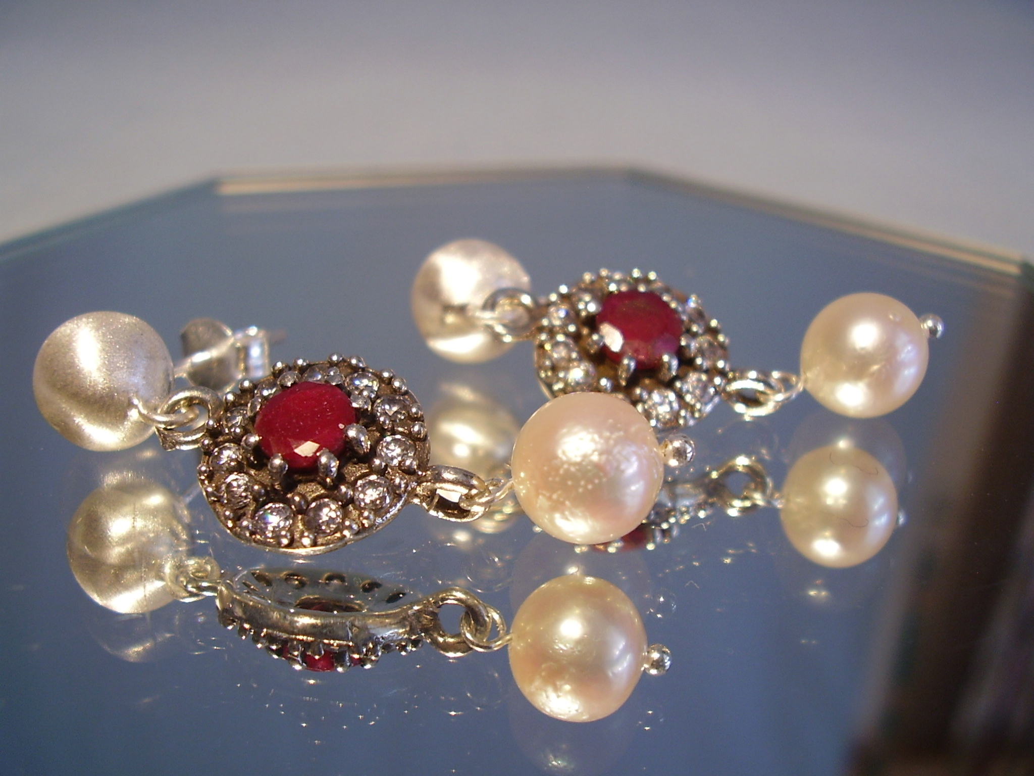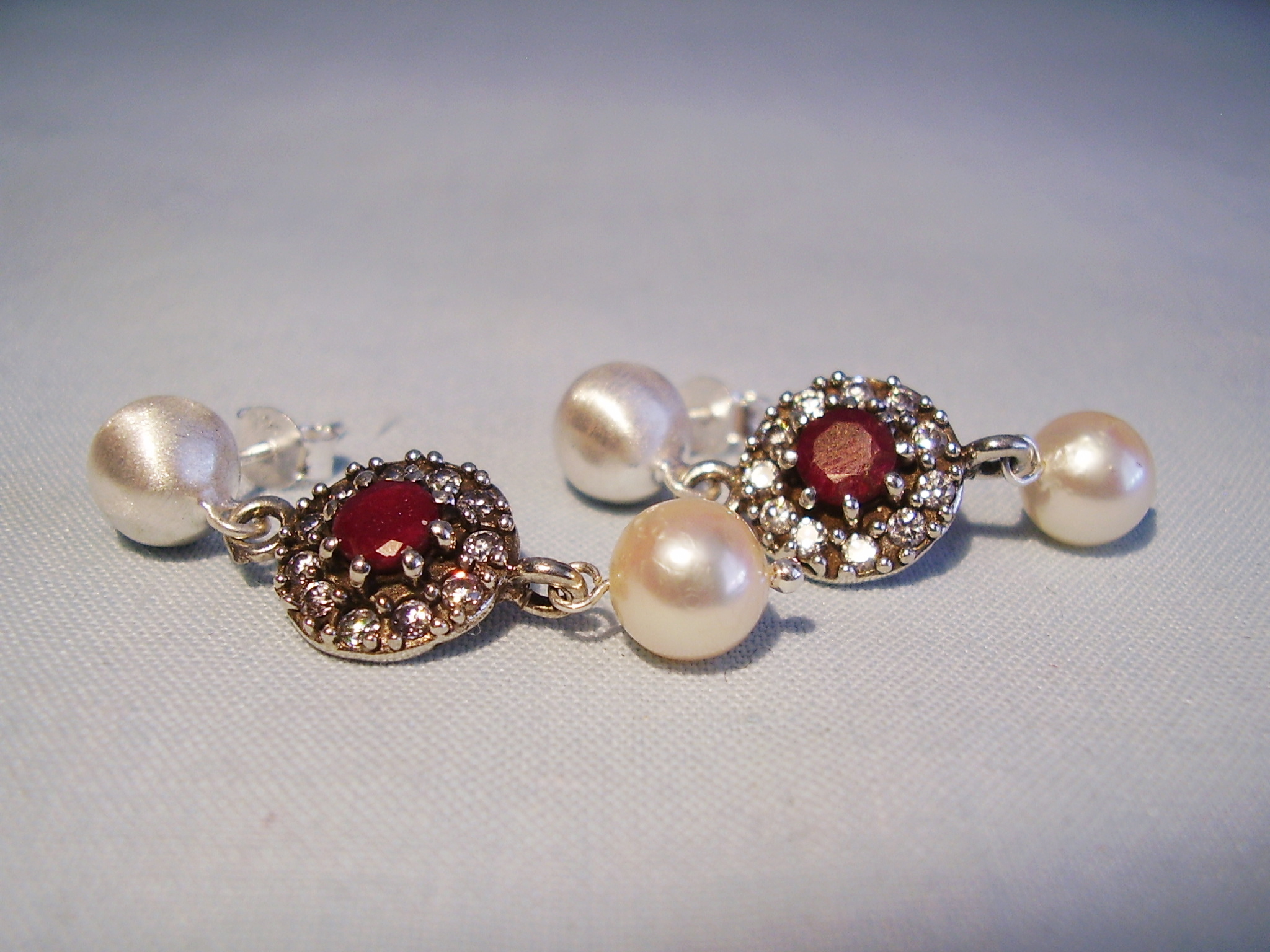 352658. RUBY PEARL -KORVAKORVUT. 925 hopeaa.