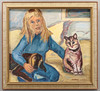 Tyttö koiran ja kissan kanssa.