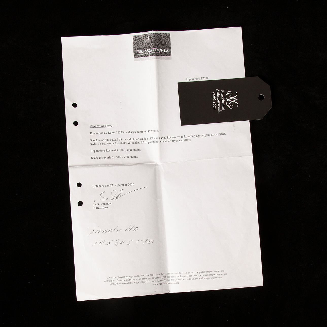 Laatikko ja arvostustodistus.