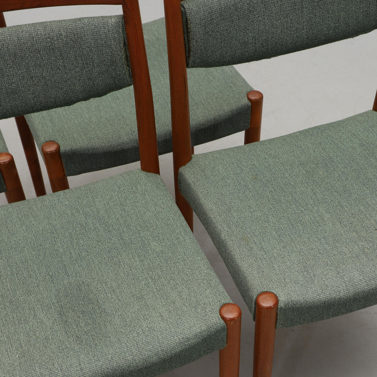Tiikki kiinteällä verhoilulla villaverhoilulla. Istuinkorkeus n. 43 cm.