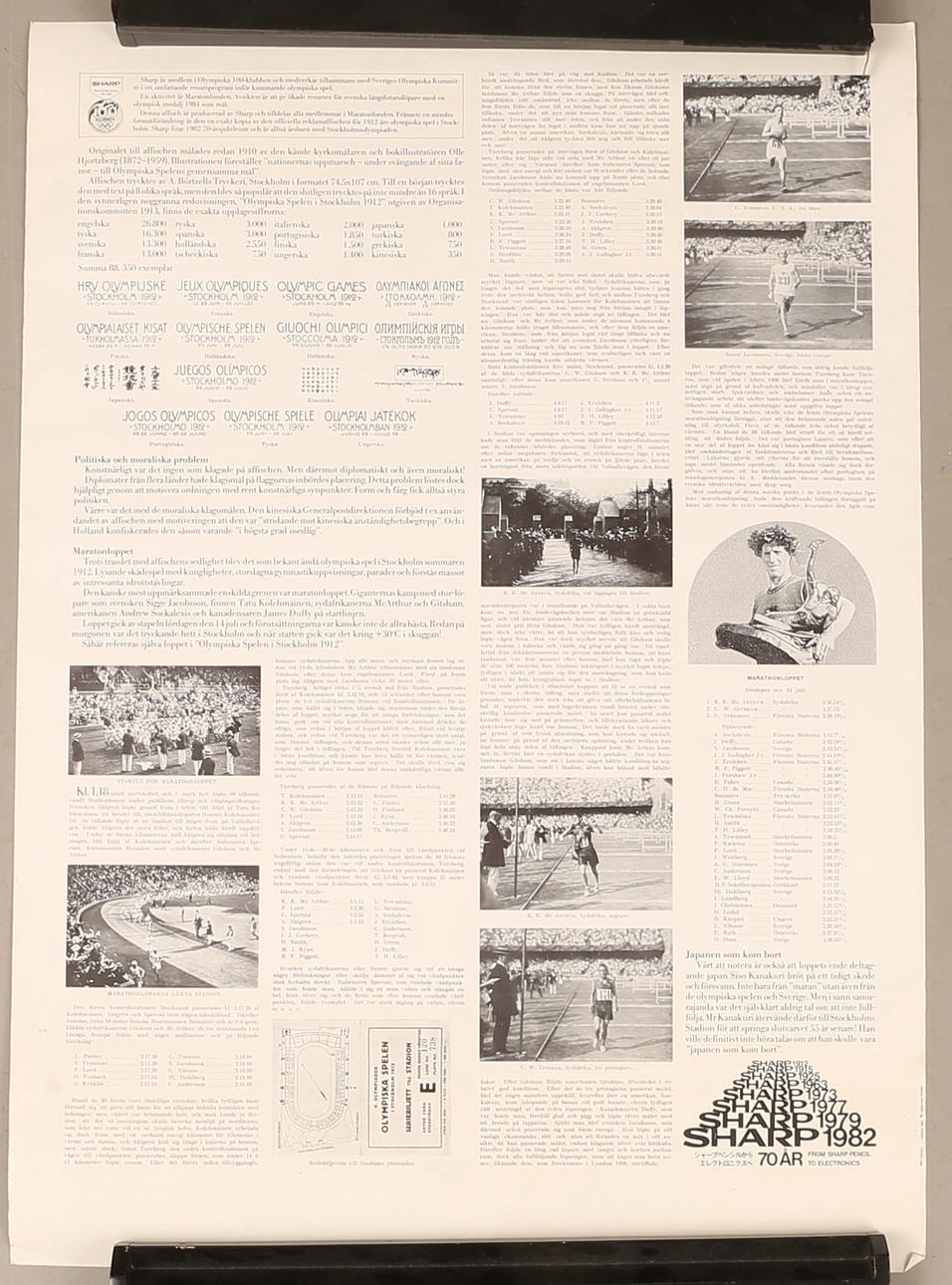2 kpl ”Tukholman olympialaisten 50-vuotisjuhla 1912". 1. ”XVII olympialaiset Rooma 1960". 1 kpl ”Olympic Games Stockholm 1912".