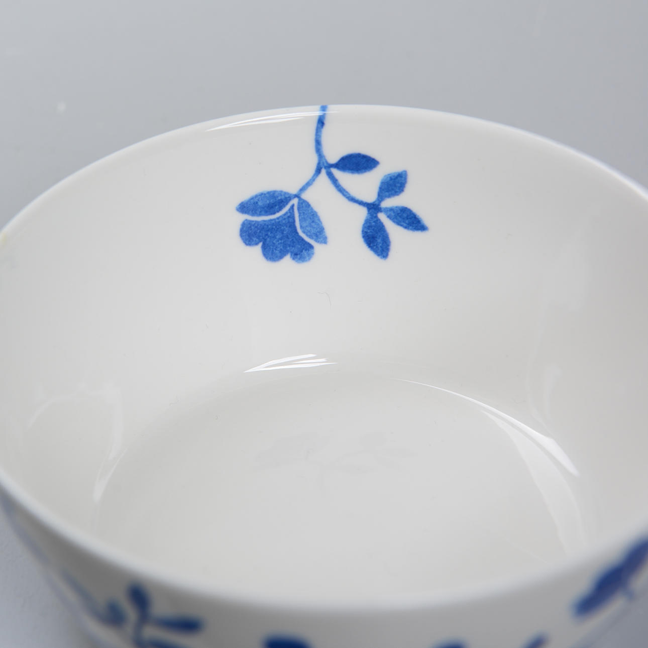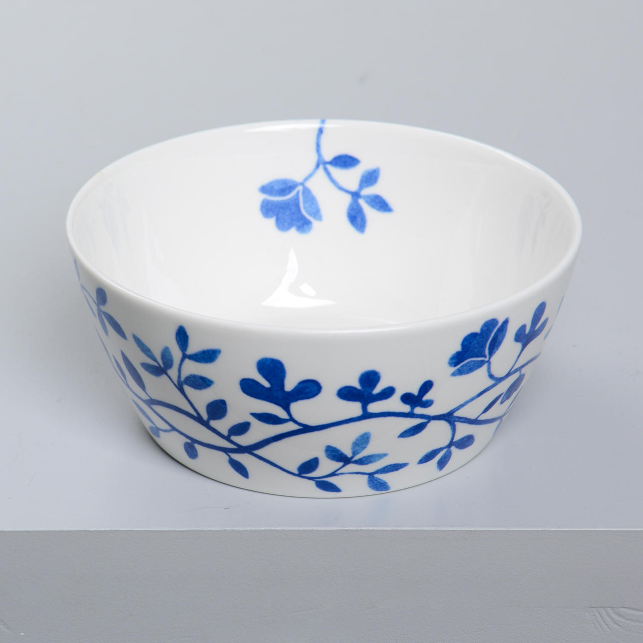 Sininen sisustus käämittävistä lehdistä kukilla luonnonvalkoista pohjaa vasten. Sarja esiteltiin vuonna 2008, ja sen valmistus on lopetettu.