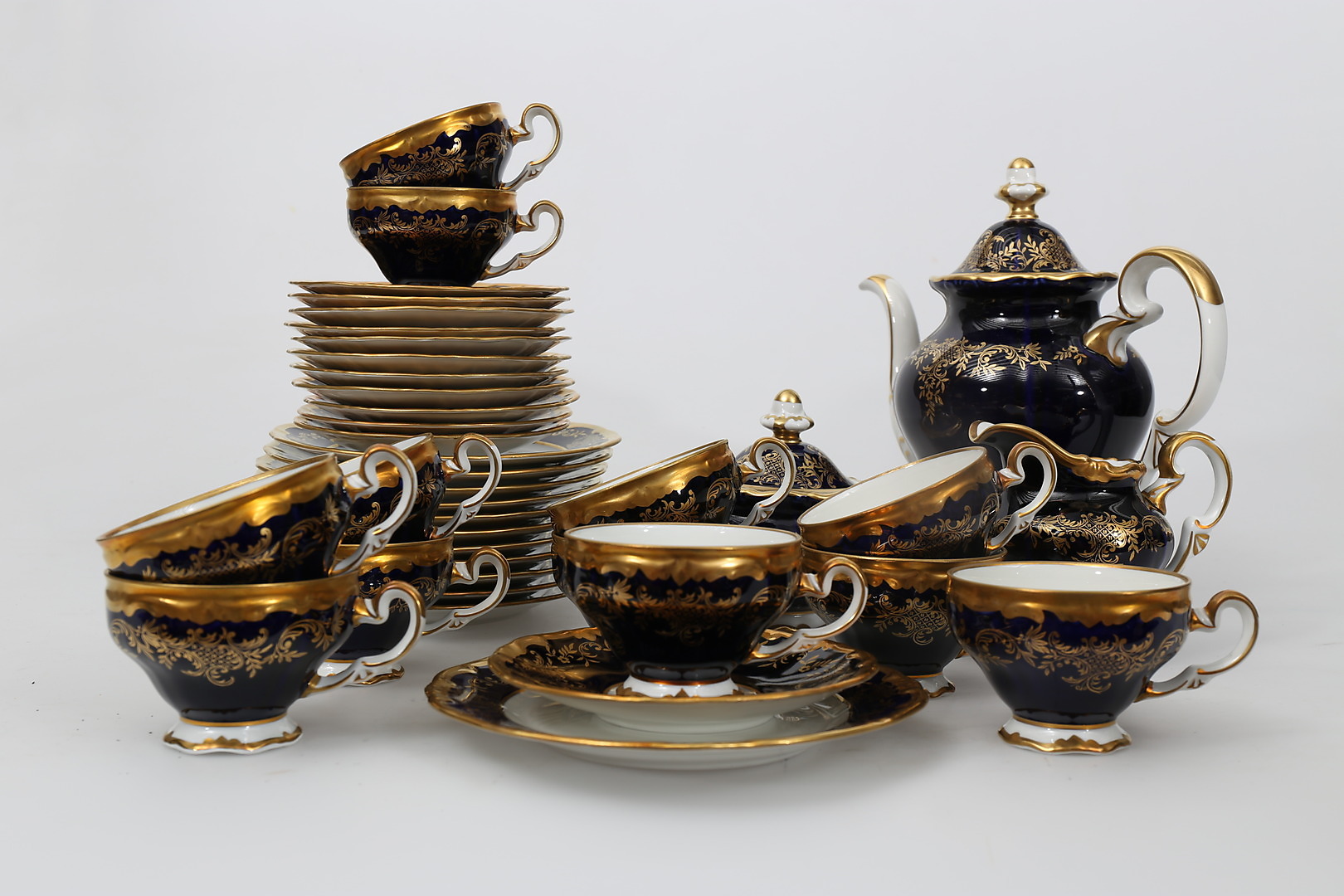 356643. KAHVISETTI, posliini, 39 kpl, Echt Weimar Kobolt, Weimar.