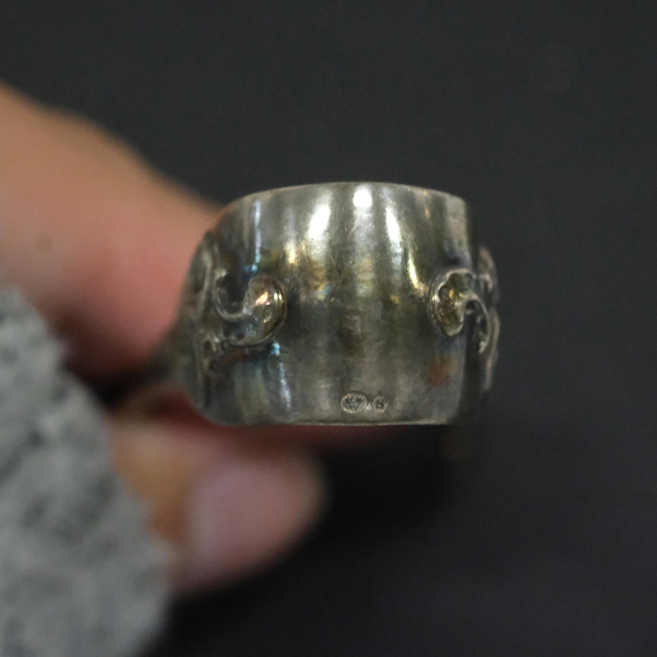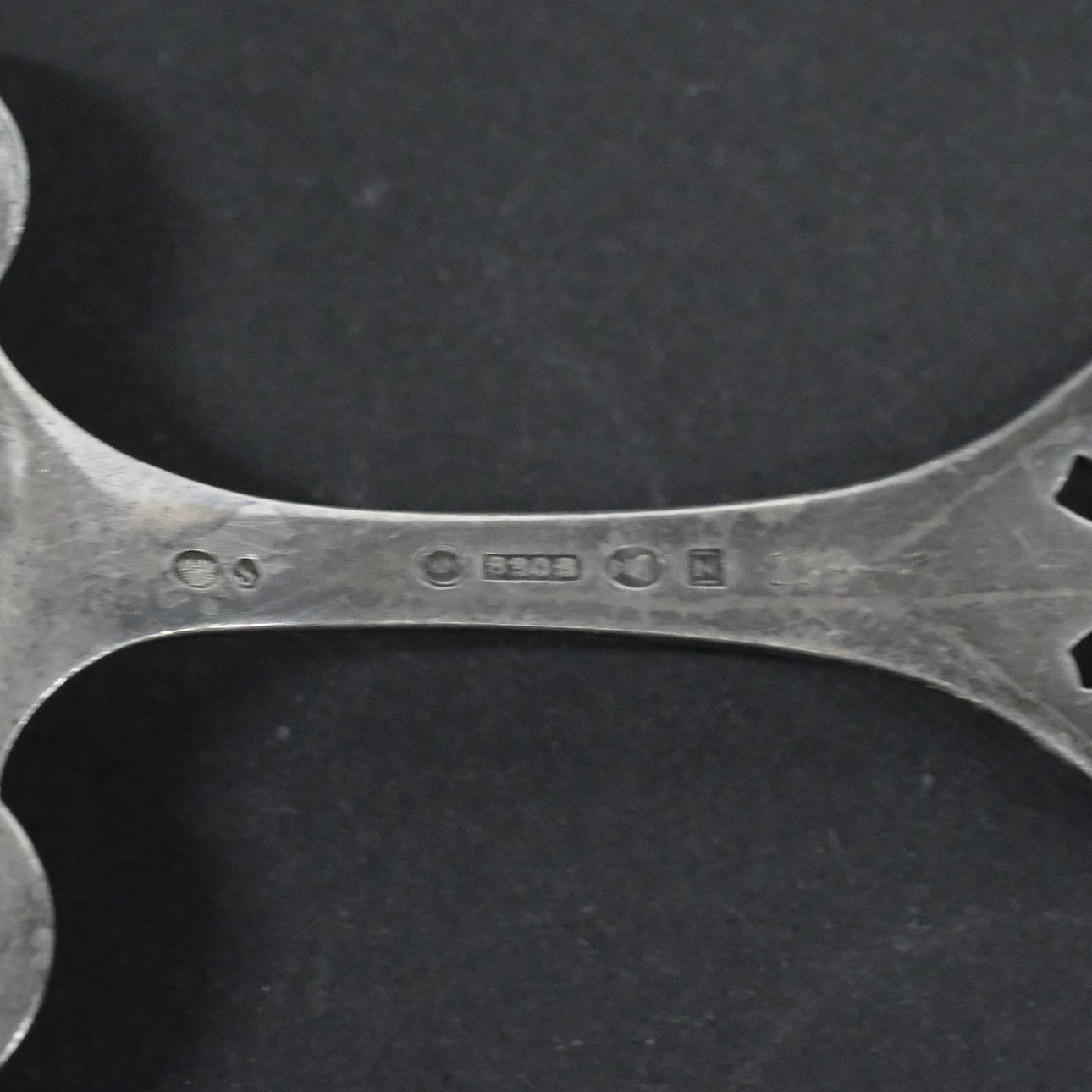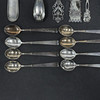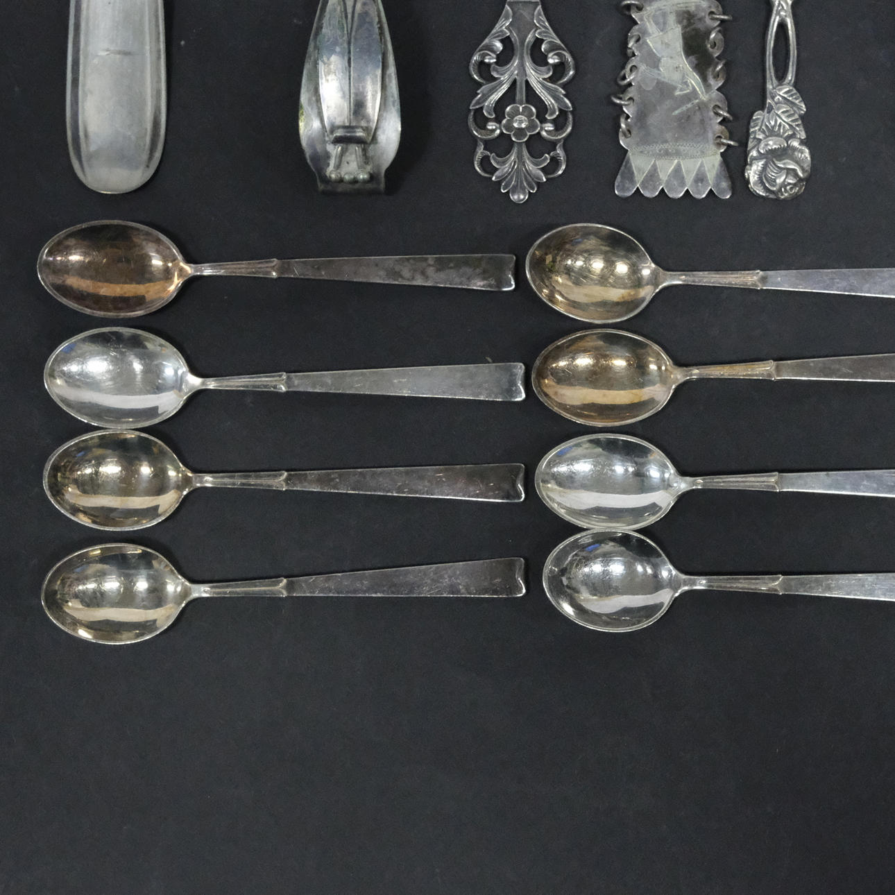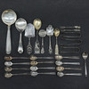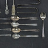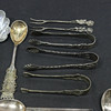 Hopeaa: 11 mokkalusikkaa; 3 sokeripihtiä, 2 mokkalusikkaa, malli ”Rosenholm; 2 lusikkaa, Sami malli; 2 taittolusikallista; 1 aloituslapio; 2 sokerilusikkaa ja 2 oliivihaarukkaa, kokonaispaino 374 grammaa.