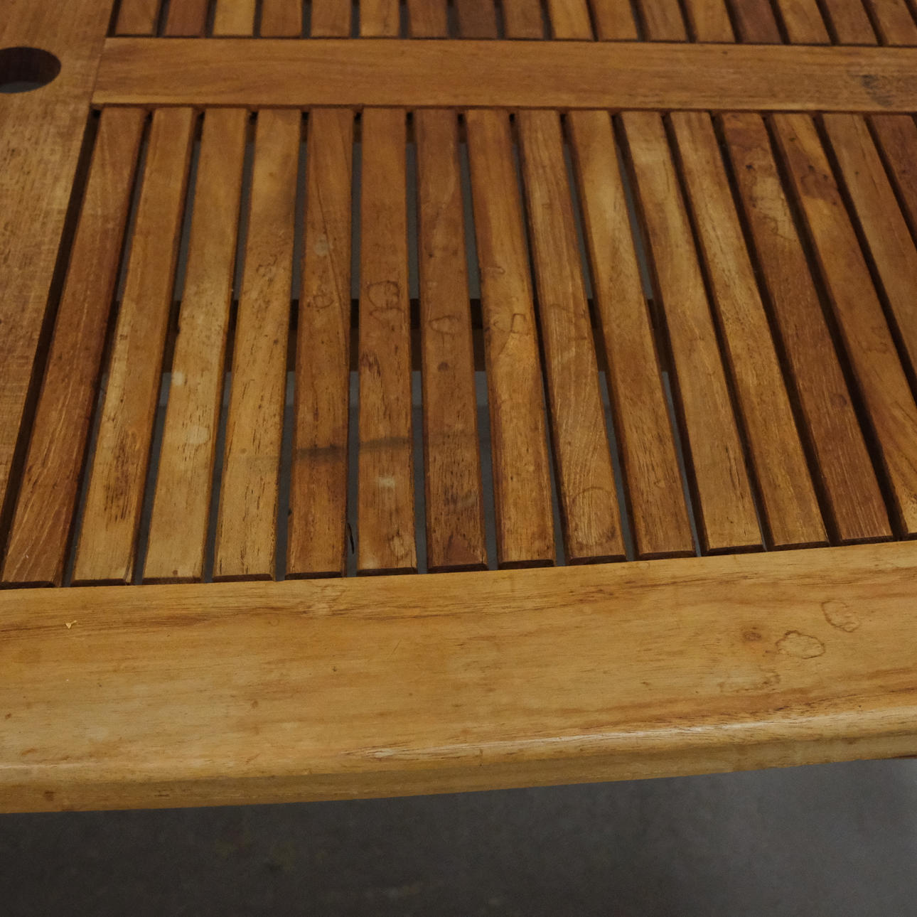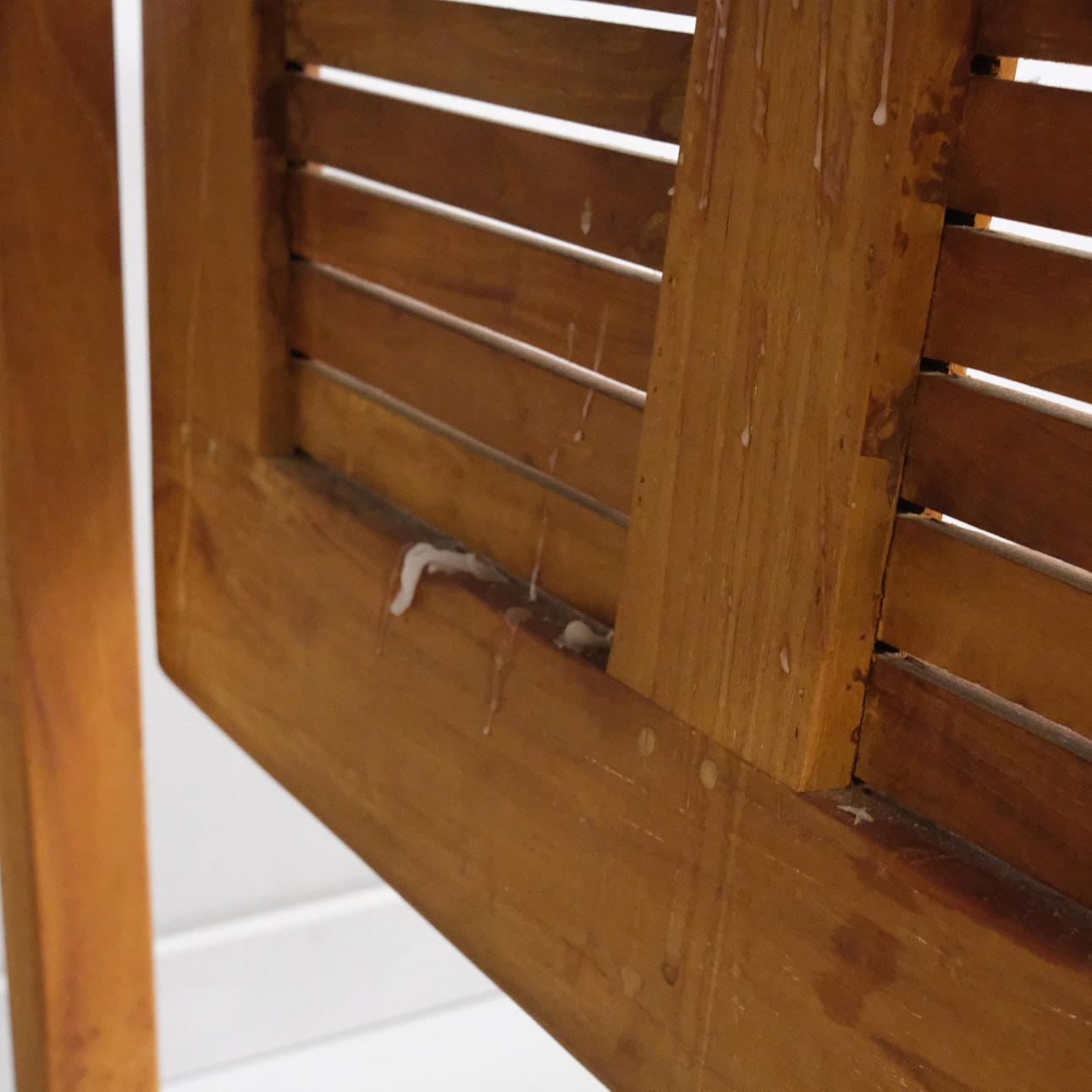 Taulukko, jossa on tahroja sekä valkaistu. Läpät kynttiläjäännöksillä.