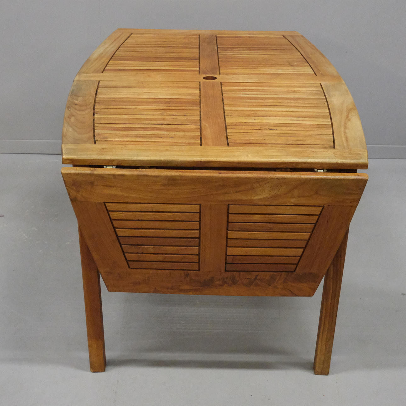Pöytä läpäillä, korkeus 73cm, pituus 150cm + läpät 40cm, leveys 90cm.